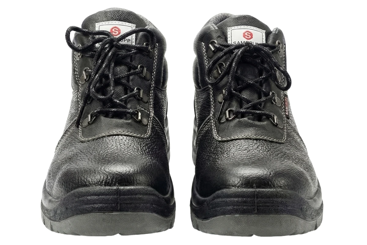 Ботинки летние мужские для рабочих изготовлены из натуральной кожи и поливинилхлорида (ПВХ).