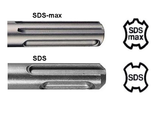 SDS – используются для легких перфораторов. Диаметры таких сверил 6, 8, 10 и 12 мм. Этот тип хвостика у бура имеет четыре паза для фиксации стопорными шариками (закрытые) и для направляющих клиньев (открытые пазы).