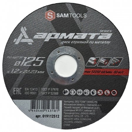 Диск отрезной по металлу (125х1.2х22.3) серия АРМАТА