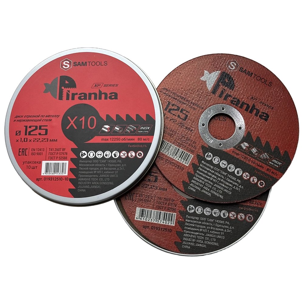 Диск отрезной по металлу и нержавеющей стали (125х1.0х22.3) Samtools Piranha XP (упаковка 10 шт.) - купить оптом и в розницу можно у нас на сайте, отправив заявку по почте zakaz@samgrupp.ru или позвонив по телефону 8 (495) 120-32-22 в рабочее время с 9:00 до 18:00 пн.-пт.