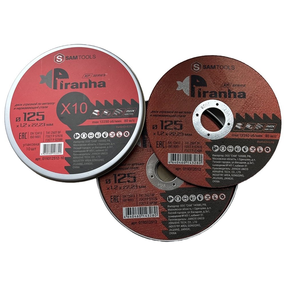 Диск отрезной по металлу и нержавейке (125х1.2х22.3) серия Piranha XP в упаковке по 10 шт.