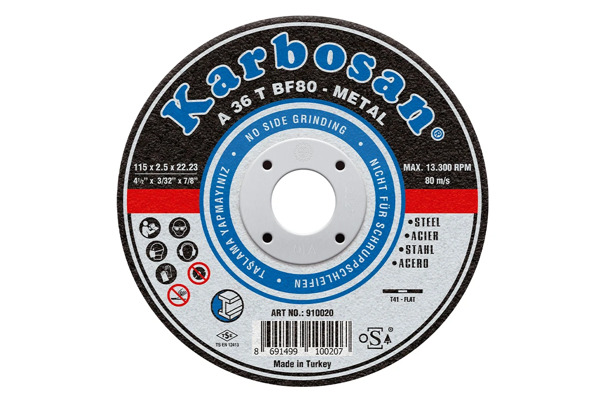 Абразивный круг турецкого производителя Karbosan подходит для всех видов обработки различных швов и сколов, которые являются следствием проведения работ по металлу. В результате, поверхность изделия становится особенно гладкой. Для производства отрезного круга по металлу используется исключительно качественный абразивный материал – оксид алюминия.