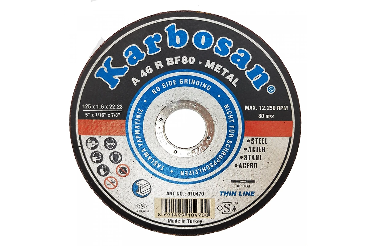 Абразивный круг турецкого производителя Karbosan подходит для всех видов обработки различных швов и сколов, которые являются следствием проведения работ по металлу. В результате, поверхность изделия становится особенно гладкой. Для производства отрезного круга по металлу используется исключительно качественный абразивный материал – оксид алюминия.