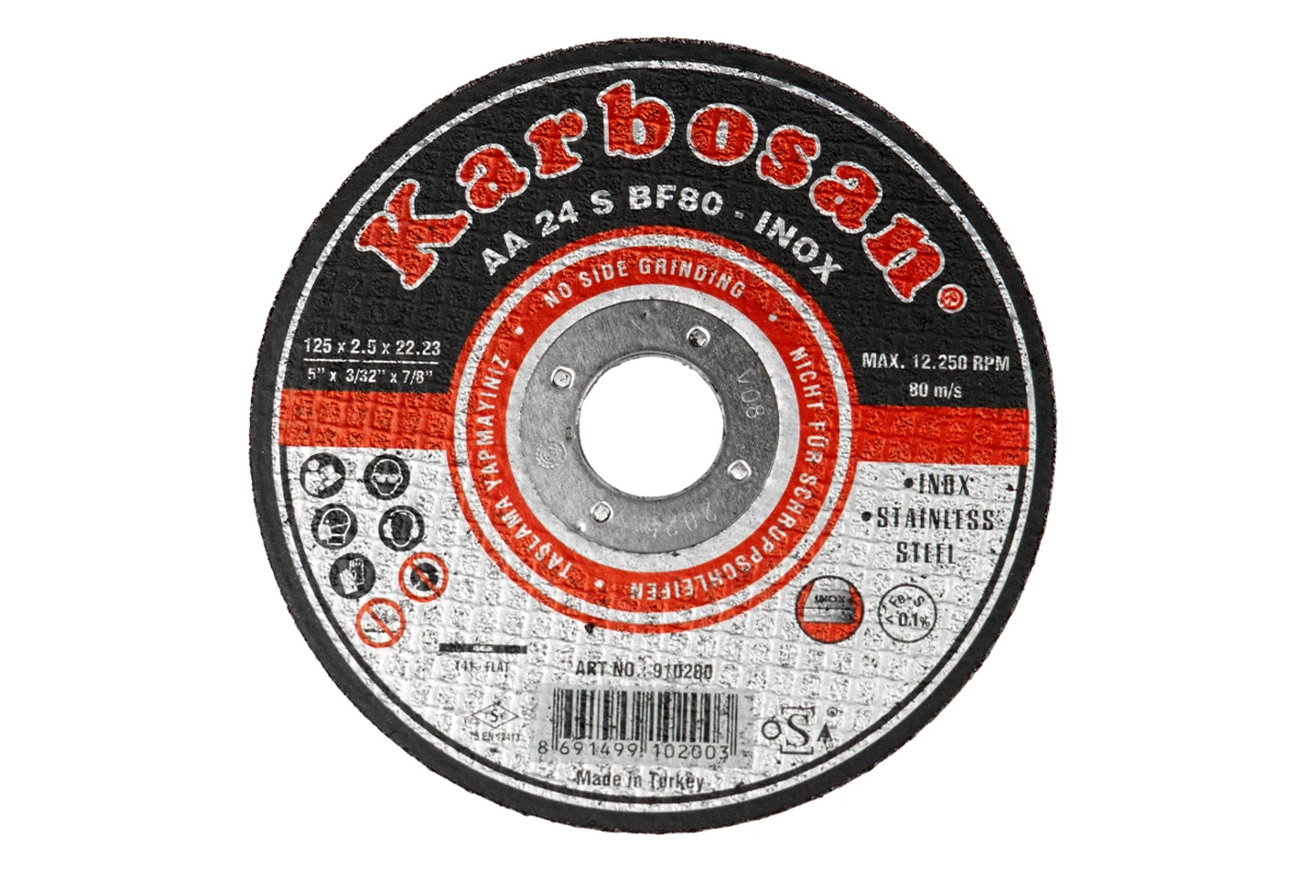 Абразивный круг турецкого производителя Karbosan подходит для всех видов обработки различных швов и сколов, которые являются следствием проведения работ по металлу. В результате, поверхность изделия становится особенно гладкой. Для производства отрезного круга по металлу используется исключительно качественный абразивный материал – оксид алюминия.