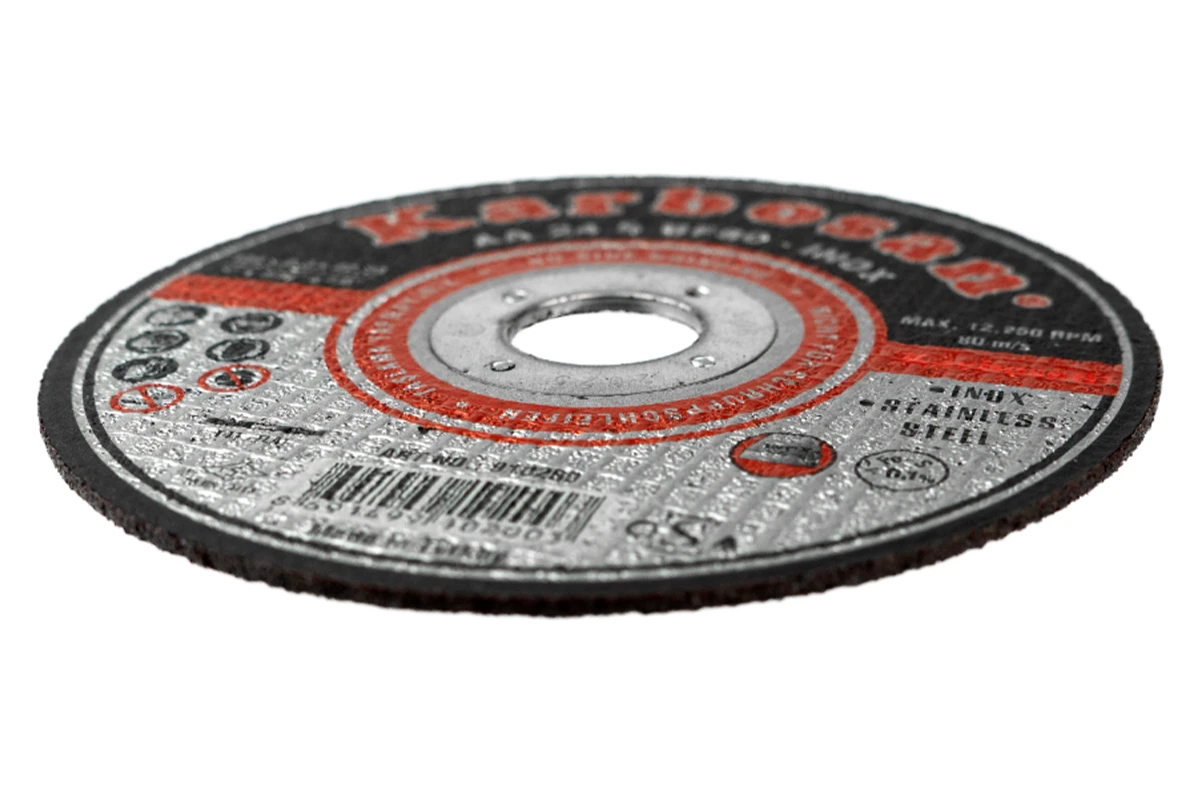 Абразивный состав на основе крупных зерен позволяет значительно увеличить срок службы изделия. Отрезной круг Karbosan прекрасно зарекомендовал себя в проведении работ с заготовками из металла и стали наиболее востребованных степеней плотности.