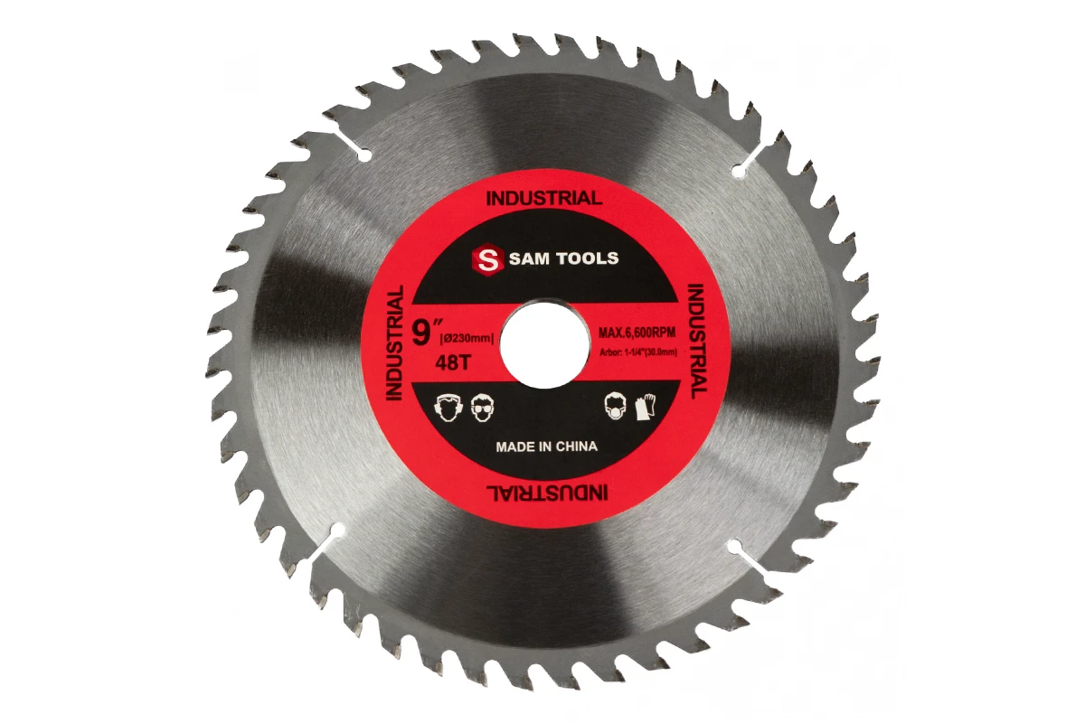 Диск пильный по дереву 230х30 мм, 48 зубьев от Samgrupp - предназначен для распила древесины мягких и твердых пород, досок, фанеры, ДСП. Зубья диска имеют специальную заточку для качественного распила. Диск изготовлен из стали высокого качества, что увеличивает срок службы и эффективность работы диска. Форма зубьев с уклоном обеспечивает эффективную распиловку заготовок крупного размера. Высококачественные пильные диски по дереву от бренда Samtools для ручных дисковых пил и станков.Средние зубцы имеют попеременную заточку, что позволяет добиться оптимального соотношения скорости и качества реза. Благодаря этому, диск пильный по дереву от Samgrupp подходит для использования как в быту, так и в профессиональной работе.