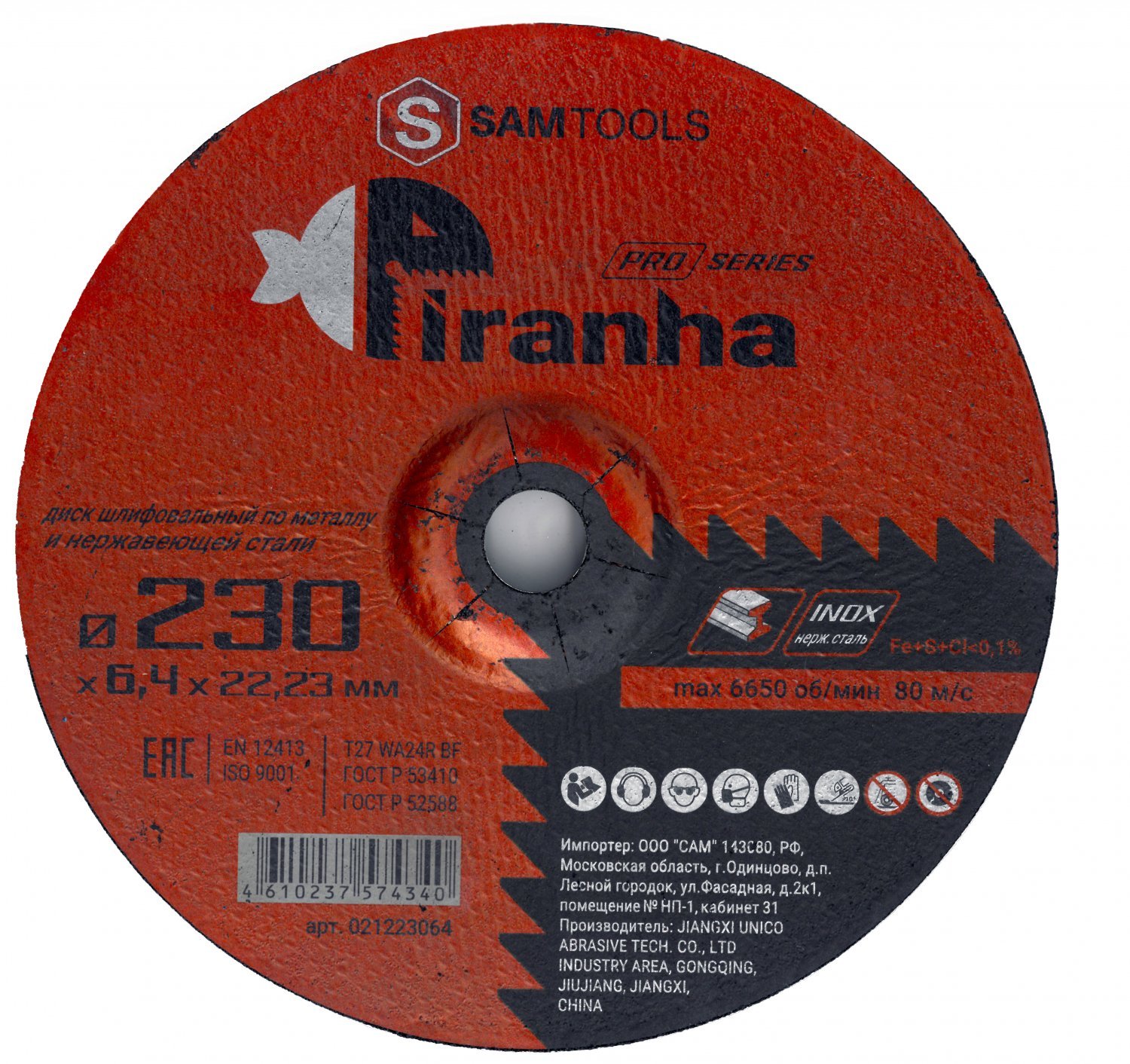 Диск шлифовальный по металлу и нержавеющей стали 230х6.4х22.2 Piranha Pro Диск шлифовальный (обдирочный) 230 мм серии PIRANHA является расходным инструментом для УШМ. Он применяется для шлифовки углеродистых, нелигированных и нержавеющих сталей.