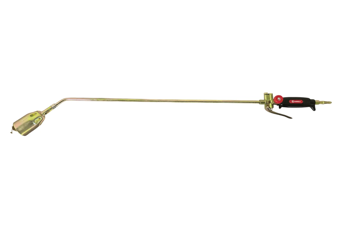 Газовоздушная горелка Samtools ГВ-111-Р рычаг, L=950 мм 08202 обладает увеличенной длиной - 950 мм, что дает возможность проводить нагрев и спайку различных материалов даже в труднодоступных местах, например, на высоте. Установка требуемой мощности пламени осуществляется посредством движения одной руки, - это стало возможным за счет рычажного исполнения. Изделие обладает низким весом что удобно при его транспортировке. Выходное соединение горелки - М12х1.25.