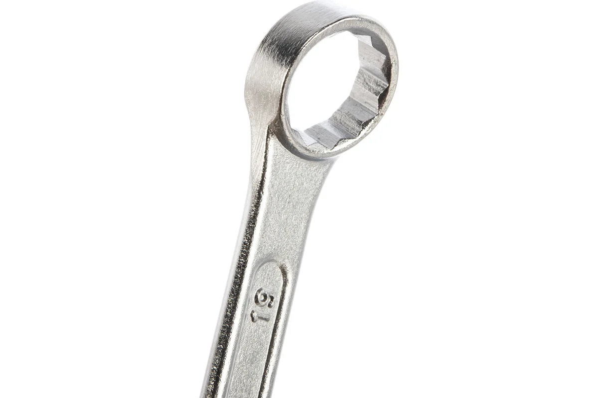 Инструмент выполнен из прочной стали, рассчитанной на высокие нагрузки при затяжке и ослаблении соединений. Хромированное покрытие защищает поверхность ключа от коррозии, воздействия влаги и загрязнений, а также облегчает очистку после работы. Накидная часть обеспечивает плотный контакт с гранями крепежа и равномерное распределение усилия, что снижает риск повреждения болтов и гаек. Рожковая часть удобна для быстрого подхвата крепежа в условиях ограниченного доступа.