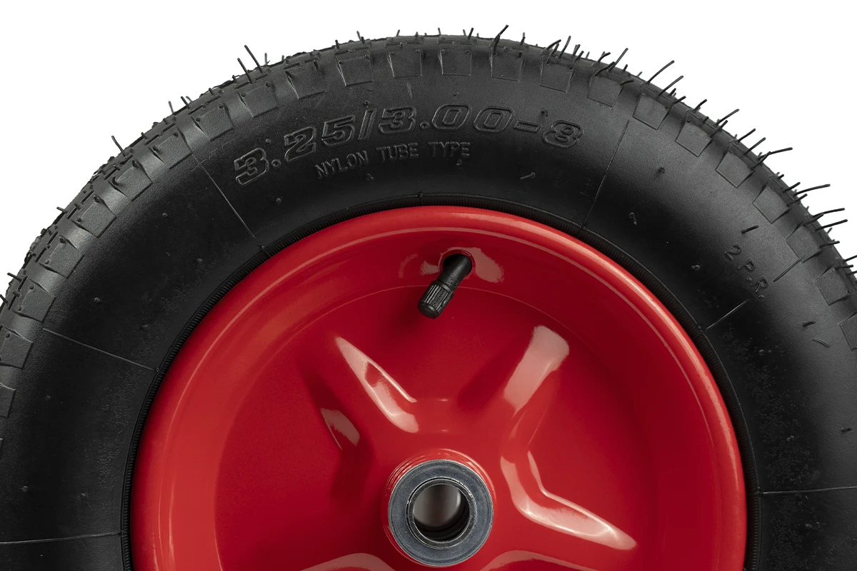 Пневматическое колесо помогает повысить манёвренность тачки, уменьшить вибрацию при движении и облегчить транспортировку сыпучих и тяжёлых материалов. Оно подходит для песка, цемента, грунта, строительного мусора и других грузов, используемых в повседневных работах.