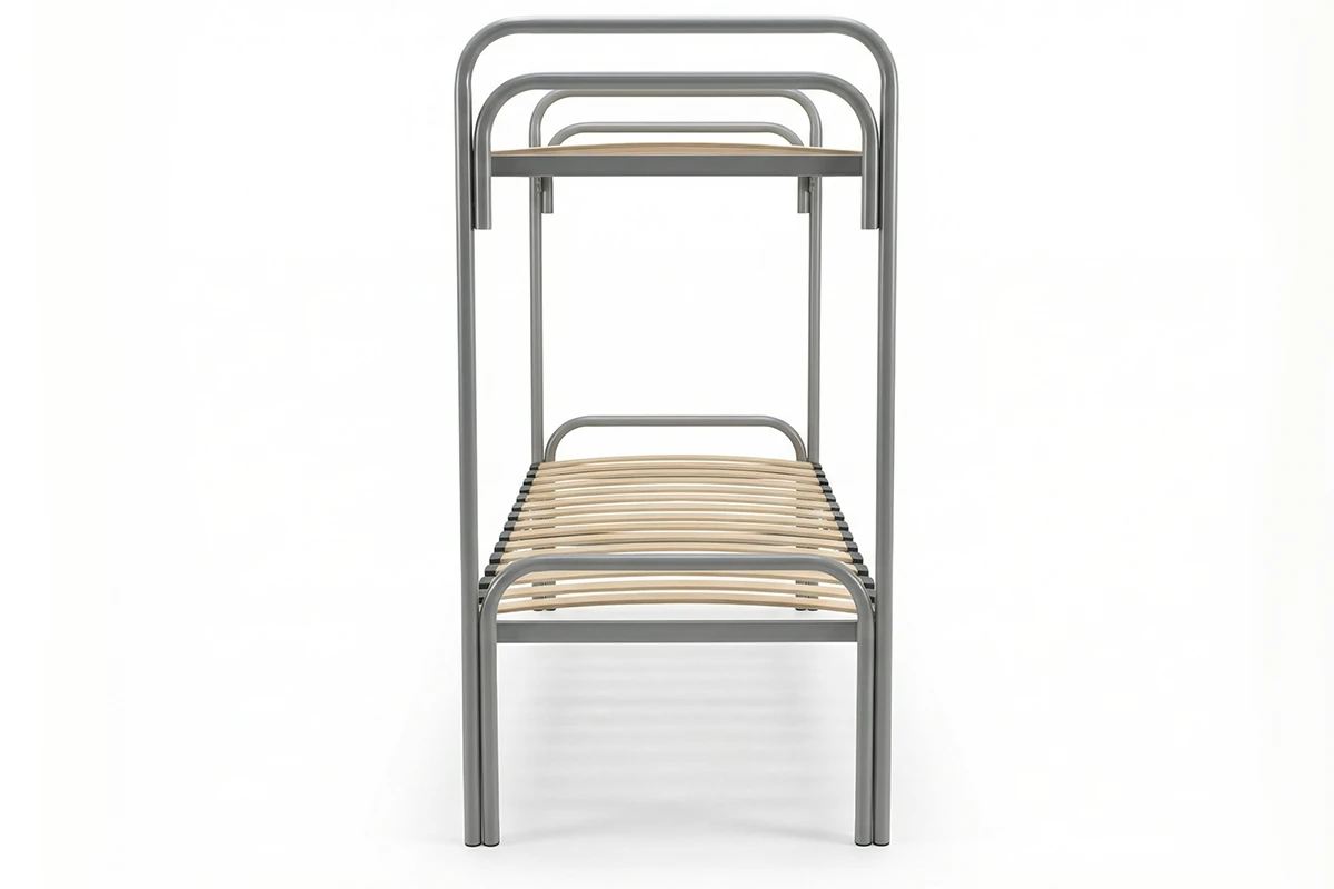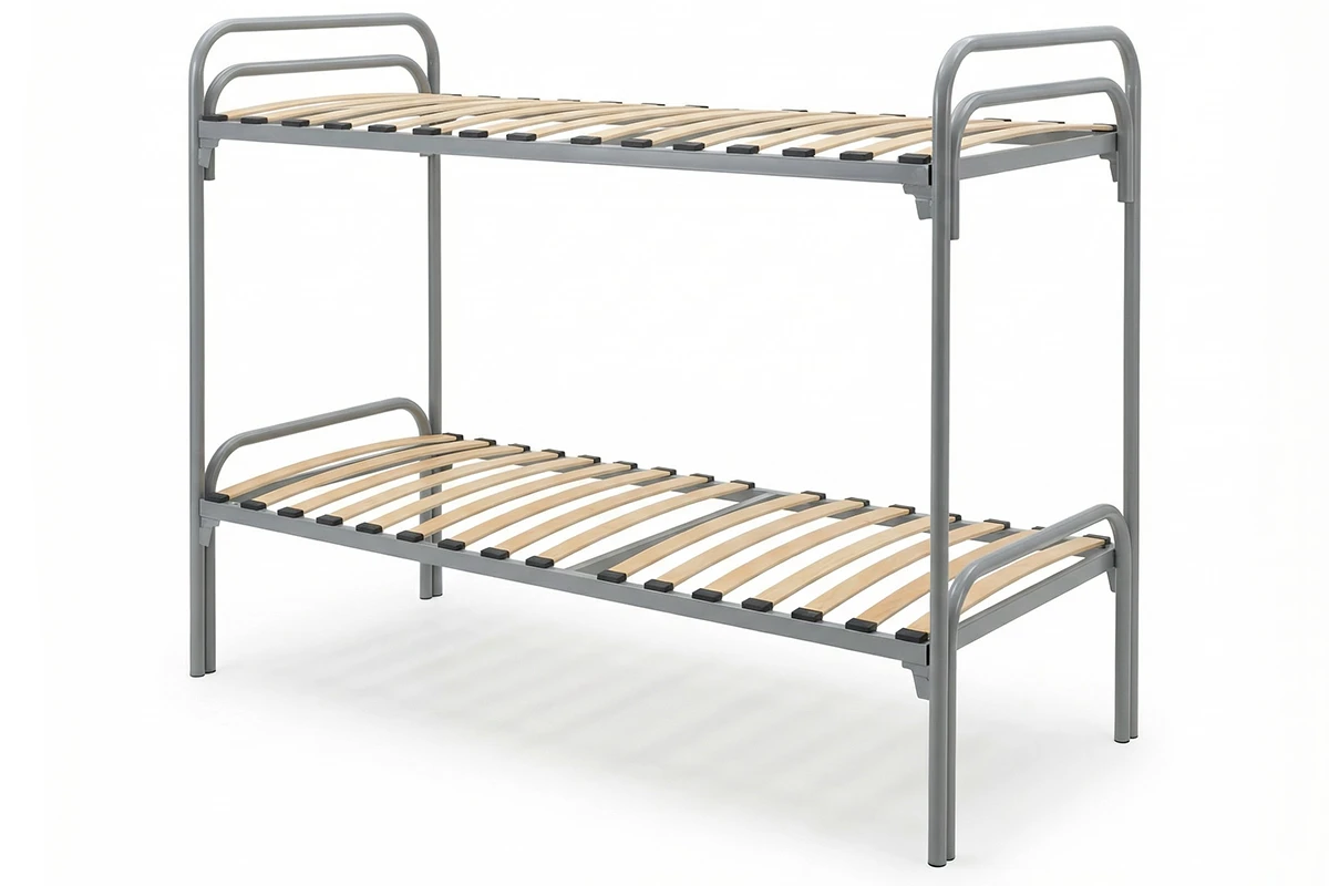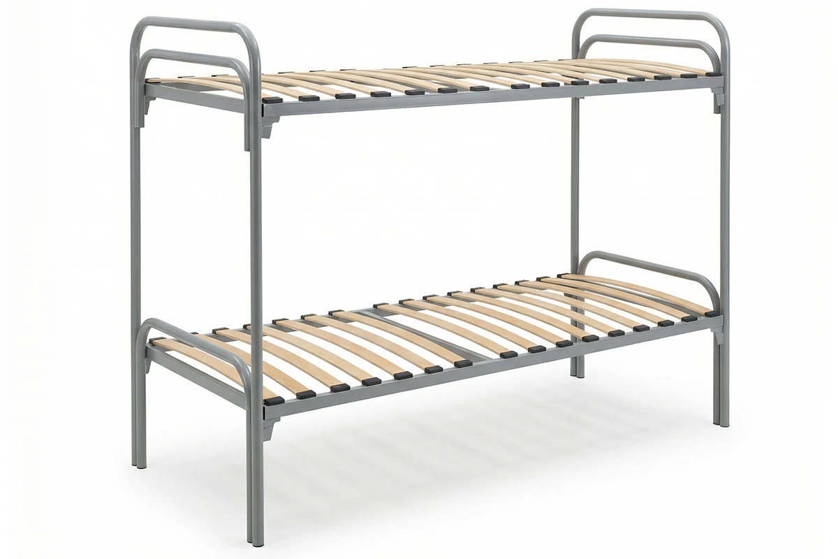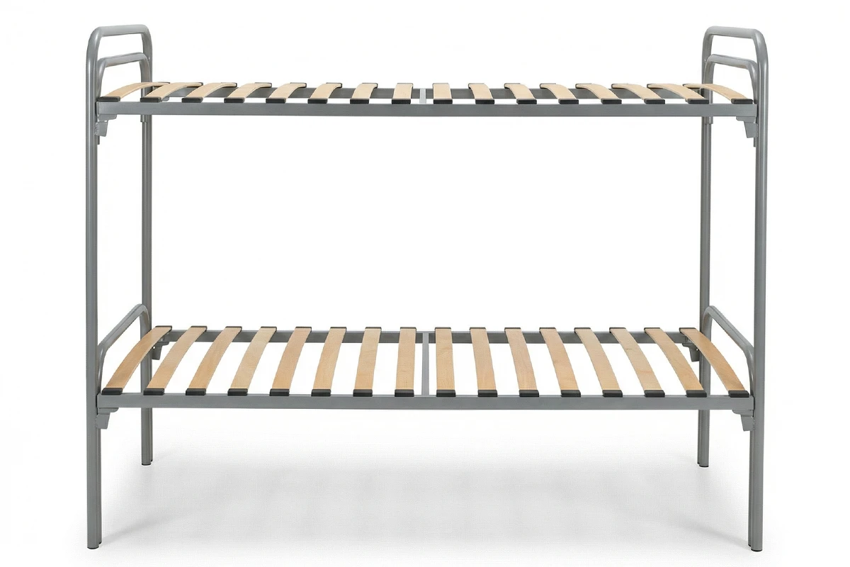 Прочная двухъярусная кровать из металла российского производства. Идеальное решение для детской комнаты, общежития, хостела или дачи. Усиленная конструкция с ортопедическим основанием на каждом ярусе обеспечивает безопасный и комфортный сон. Выдерживает нагрузку до 120 кг на спальное место. Поставляется в разобранном виде — легко собрать самостоятельно.Преимущества: