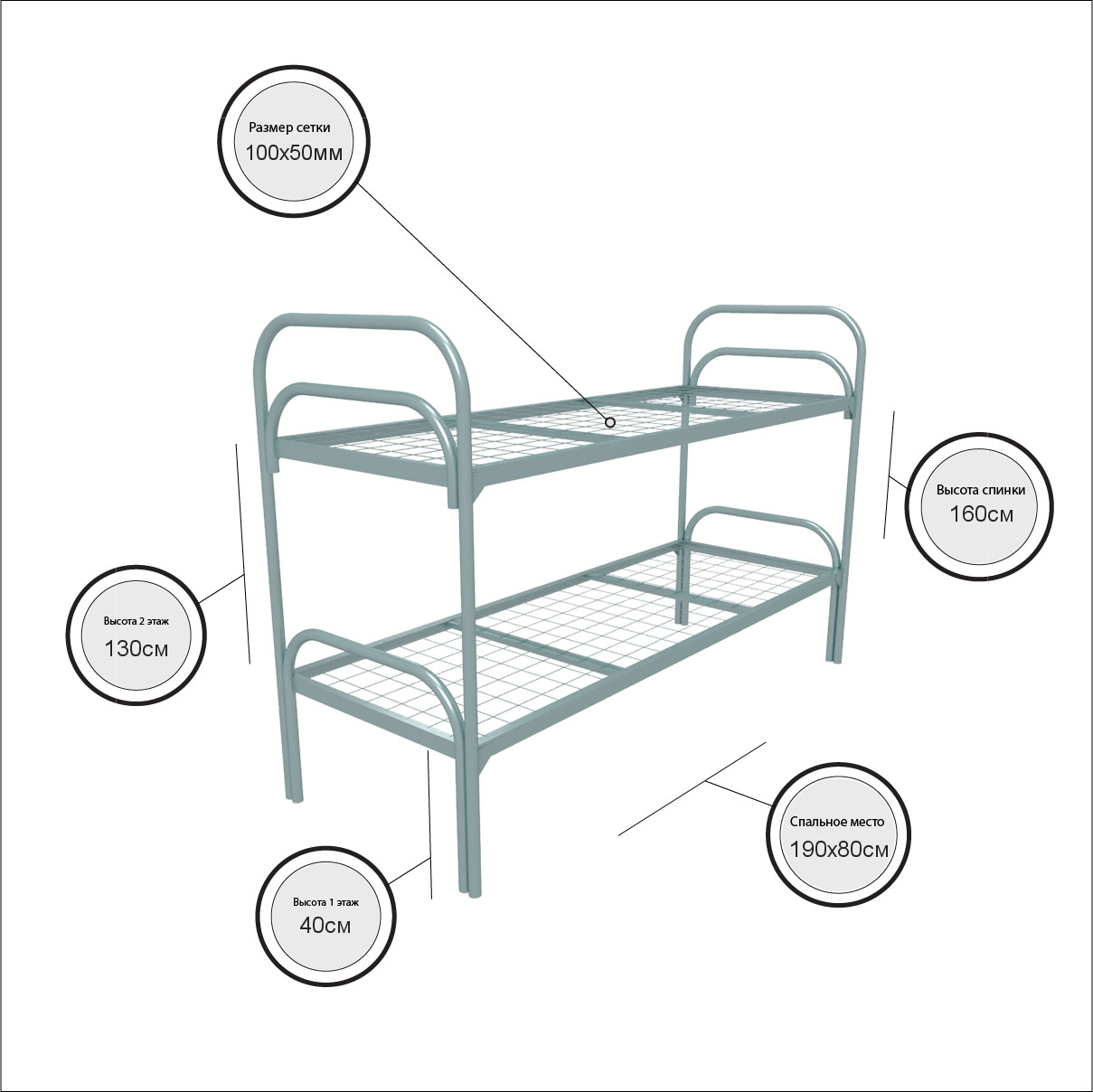 Ширина ложа варьируется от 700 до 900 мм. У нас можно заказать двухъярусную металлическую кровать разных размеров. Изделия легкие в уходе, быстро моются, не доставляют хлопот при уходе за ними.