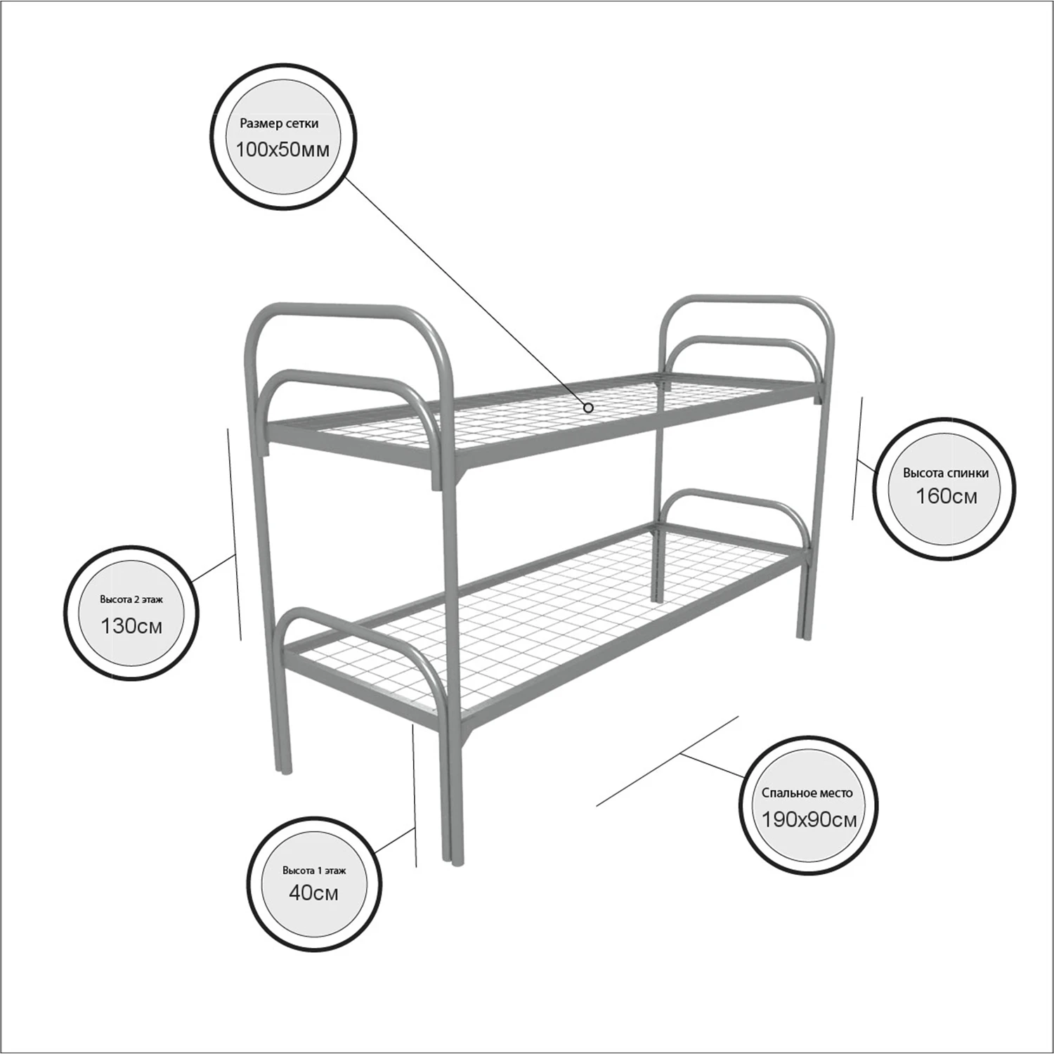 Широко распространены двухъярусные металлические кровати для обустройства рабочих или армейцев в бытовках, казармах, туристов в хостелах и общежитиях. Их легко собирать и разбирать, а малый вес позволяет легко транспортировать и перемещать изделия в нужное место.