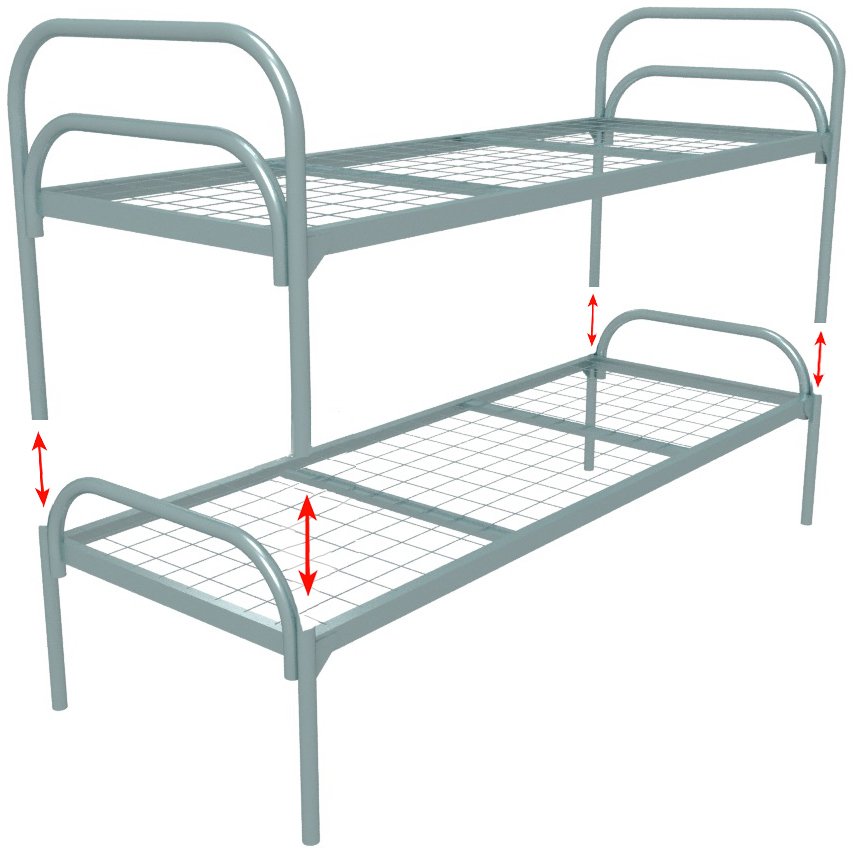 Кровать металлическая двухъярусная модульная "Стандарт + 2" (800х1900, сетка 100х50, 2 перемычки)