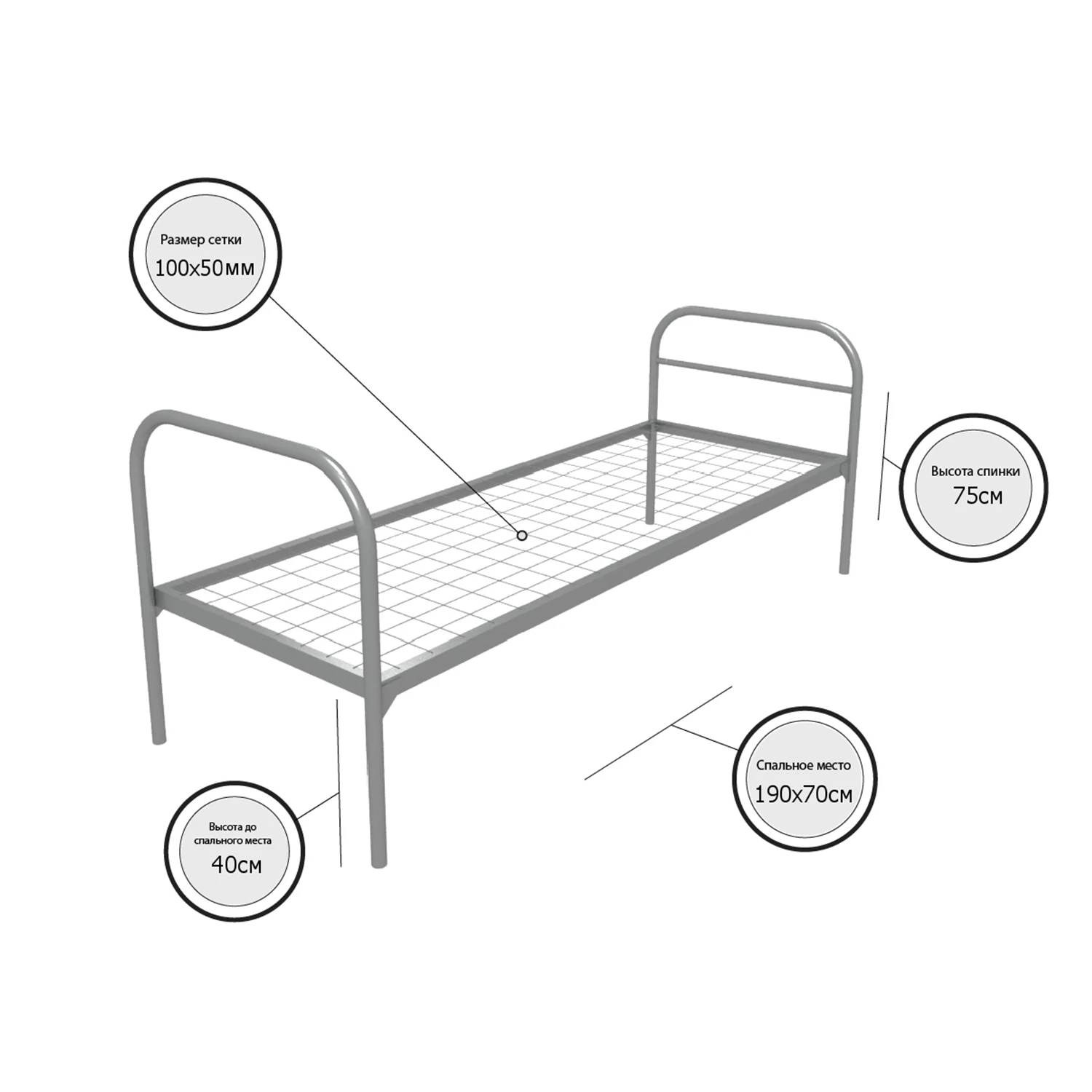 Кровать металлическая одноярусная "Бюджет +" (700х1900, сетка 100х50, 1 перемычка)