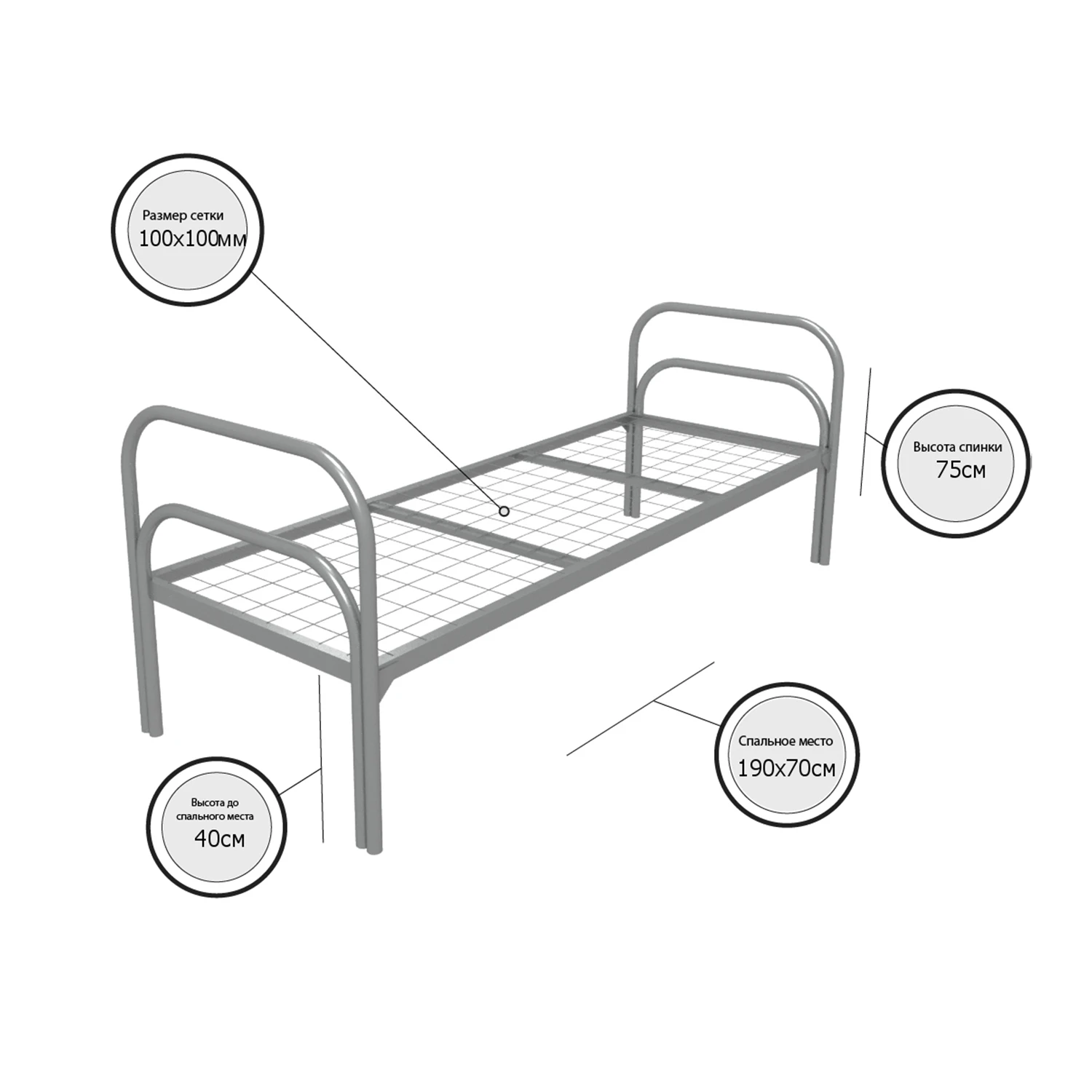 Производственная компания «Samgrupp» предлагает купить металлические одноярусные кровати для рабочих по цене производителя. Работаем с крупным и мелким оптом на взаимовыгодных условиях. Наши одноярусные металлические кровати идут из металлического профиля и труб (каркас и спинки). Собрать изделие легко, а малый вес позволяет легко перенести и транспортировать кровать в нужное место.Дешевые металлические одноярусные кровати отличаются следующими характеристиками: