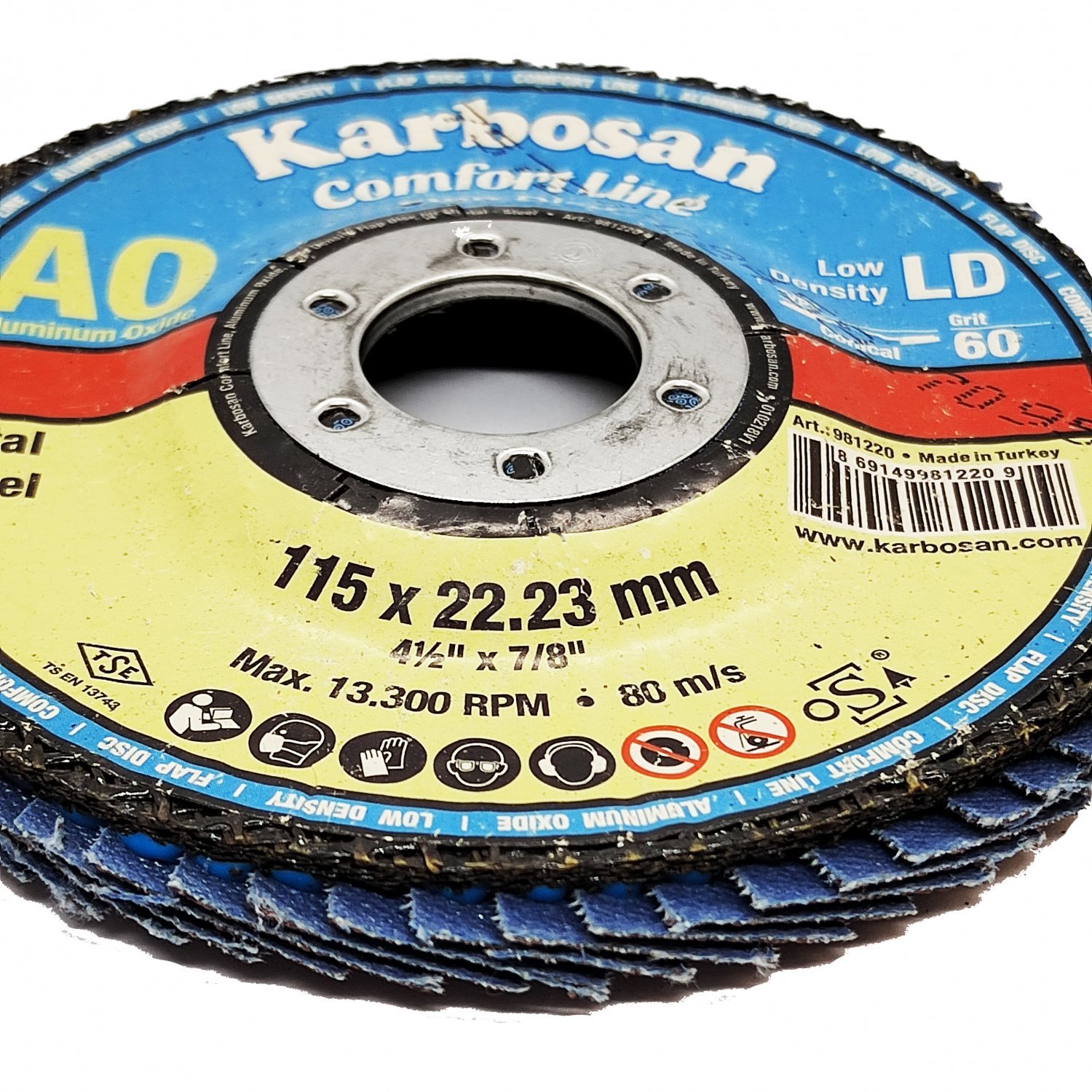 Лепестковый круг КЛТ 115х22 Р60 Karbosan Comfort Line AO LD Flap Конический – это абразивный инструмент, который используется для шлифования и финишной обработки металлических поверхностей. Этот круг подходит для обработки металлов, удаления заусенцев, зачистки сварных швов и других работ, требующих высокой точности и качества обработки.