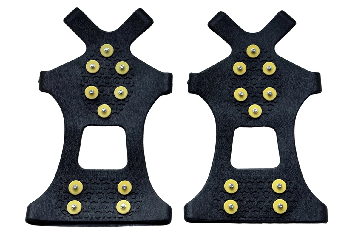 Десять стальных шипов на каждой подошве, оснащенных твердосплавными вставками, обеспечивают максимальное сцепление с льдом и устойчивость, защищая вас от падений в гололед.