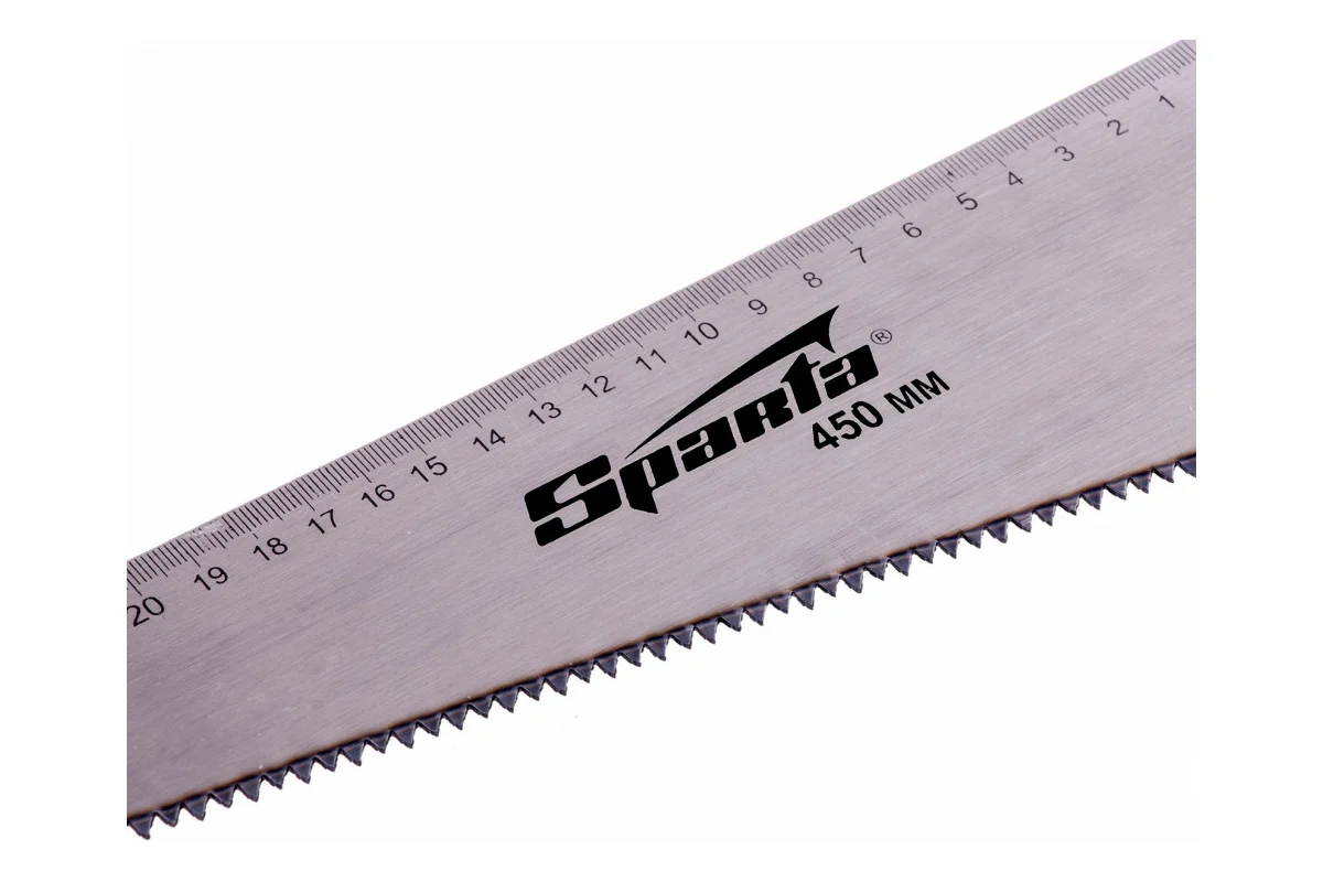 Полотно ножовки оснащено крупными зубьями с оптимальным шагом 5–6 TPI, что обеспечивает высокую производительность и быстрый рез при работе с древесиной средней и большой толщины. Такая геометрия зуба позволяет эффективно удалять опилки из зоны реза и снижает усилие при пилении. Длина полотна 450 мм удобна для работы с заготовками значительного размера и обеспечивает уверенный контроль инструмента.