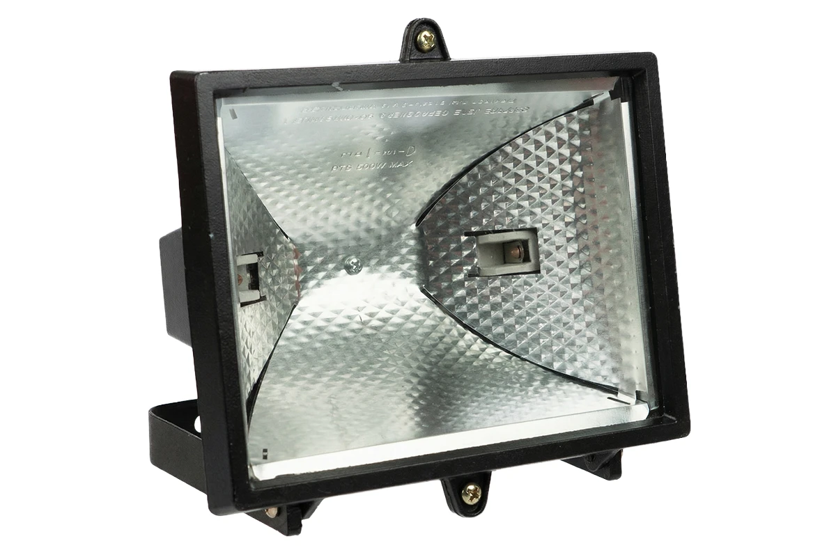 Черный уличный галогеновый прожектор 500 Вт IP44 для наружного освещения различных объектов (строительных, промышленных, садовых, военных и других).Корпус прожектора изготовлен по технологии литья из алюминиевого сплава с антикоррозийным покрытием, оснащен подвижной дугой крепления под установку. Закаленное термостекло, керамический ламподержатель, медная контактная группа, светоотражатель из рифленой алюминиевой фольги отличаются высоким качеством и продолжительным сроком эксплуатации. Изделие имеет уровень пыле- и влагозащиты IP54.