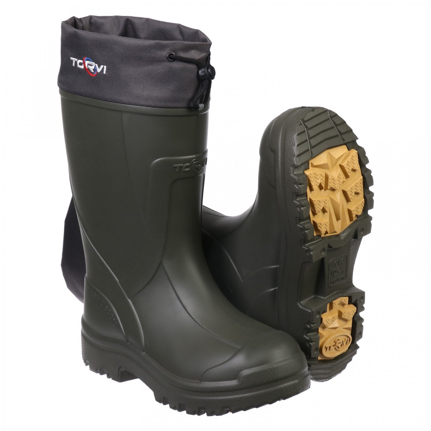 Сапоги “Torvi” обеспечат надежную защиту от морозов и высокий уровень комфорта. Верх выполнен из цельнолитого ЭВА, выдерживающего температуру до -40 °C, что делает его более долговечным по сравнению с обычной резиной — он не трескается на холоде. Многослойная структура материала эффективно блокирует холод снаружи и сохраняет тепло внутри.