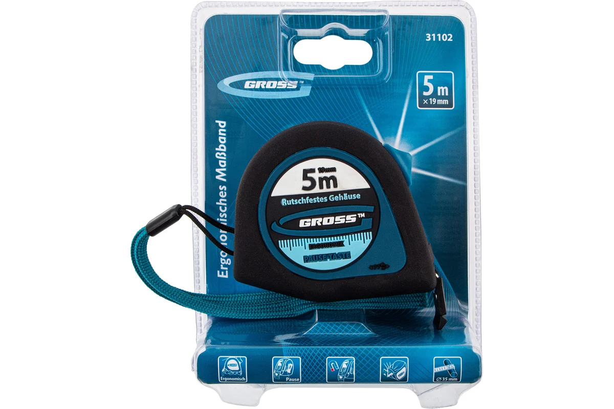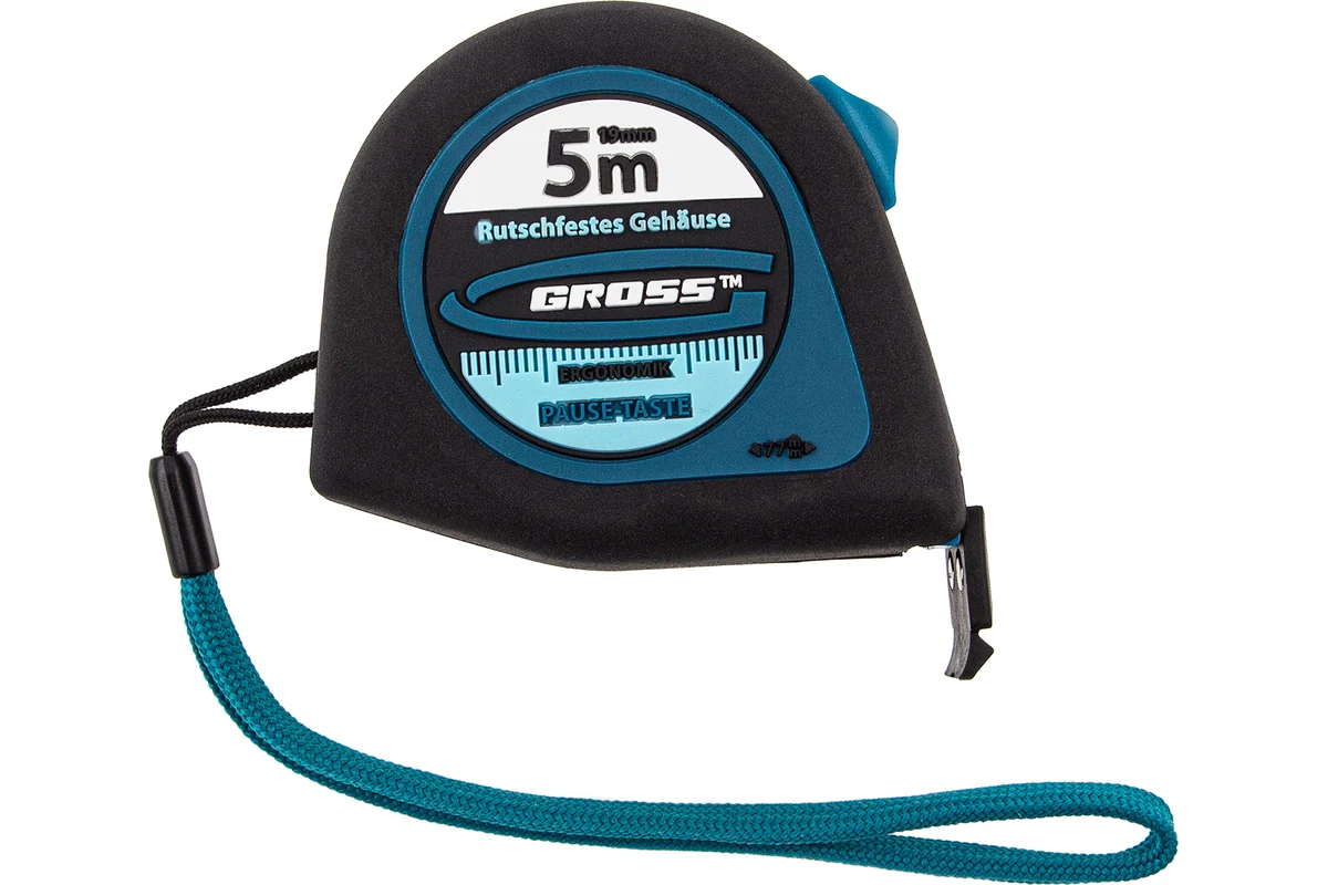 Рулетка под маркой GROSS, модель Ergonomisch, предназначена для удобного измерения длины до 5 метров.