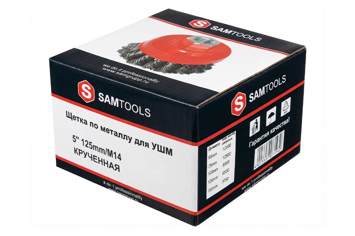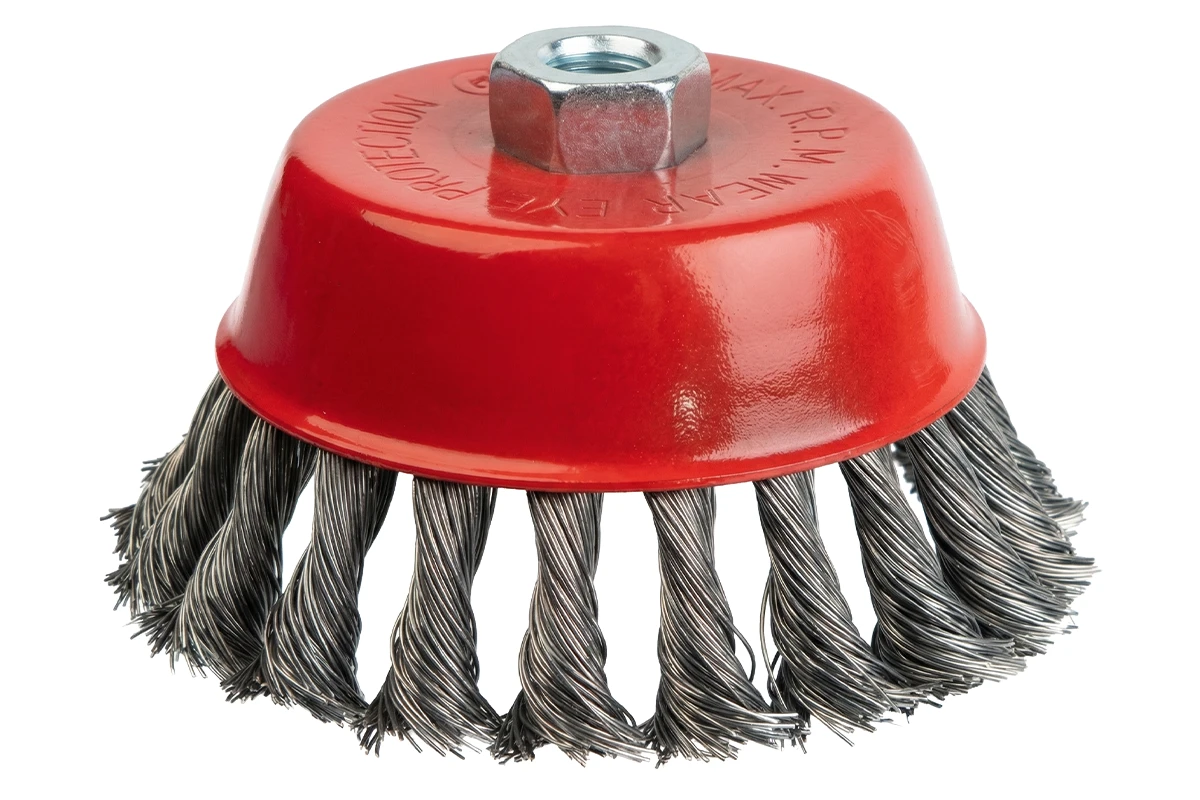 Металлическая щетка-чашка 125 мм с посадкой М14 для УШМ, Samtools - идеально подходит для зачистки металлических деталей и изделий от следов сварки, шлифовки сварочных швов, а также для очистки поверхностей от грязи, ржавчины и краски. Благодаря увеличенному диаметру обеспечивается высокая скорость обработки. Прочная стальная проволока гарантирует долговечность и устойчивость к износу и коррозии. Легко и надежно крепится на УШМ.