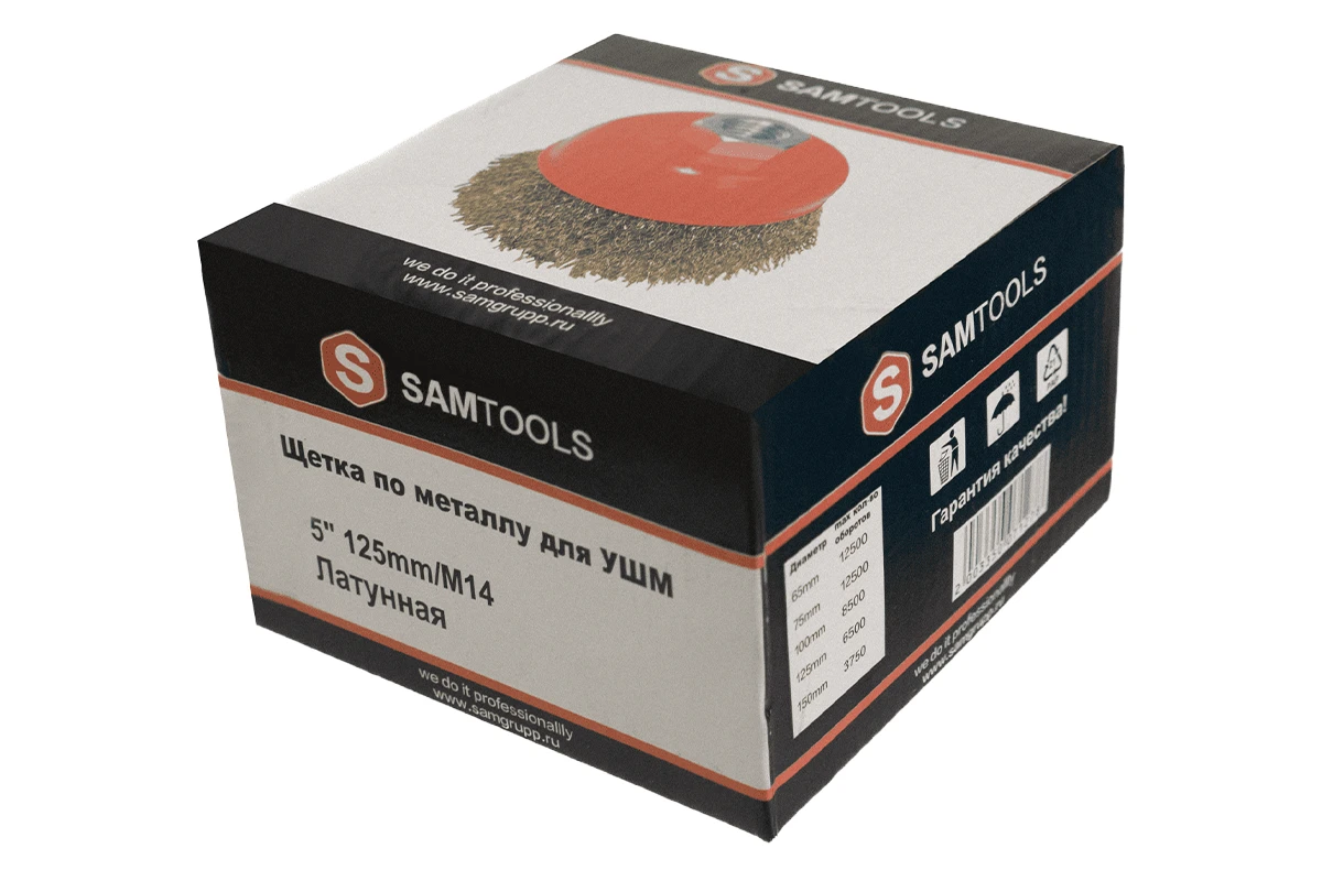Металлическая щетка-чаша для УШМ, 125 мм с посадкой шайбы M14, Samtools - многоразовая насадка для УШМ, эффективно очищает металлические детали от шлака, грязи, ржавчины и краски.Высокая скорость обработки обеспечивается благодаря увеличенному диаметру. Прочная стальная проволока с латунным покрытием гарантирует долгий срок службы и надежное крепление на УШМ.