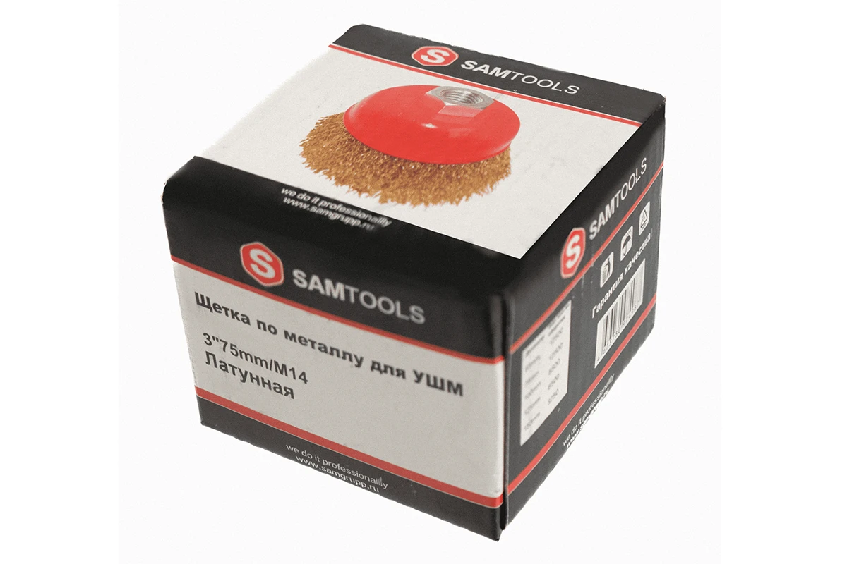 Металлическая щетка-чаша для УШМ, 75 мм с посадкой шайбы M14, Samtools - многоразовая насадка для УШМ, эффективно очищает металлические детали от шлака, грязи, ржавчины и краски.Высокая скорость обработки обеспечивается благодаря увеличенному диаметру. Прочная стальная проволока с латунным покрытием гарантирует долгий срок службы и надежное крепление на УШМ.