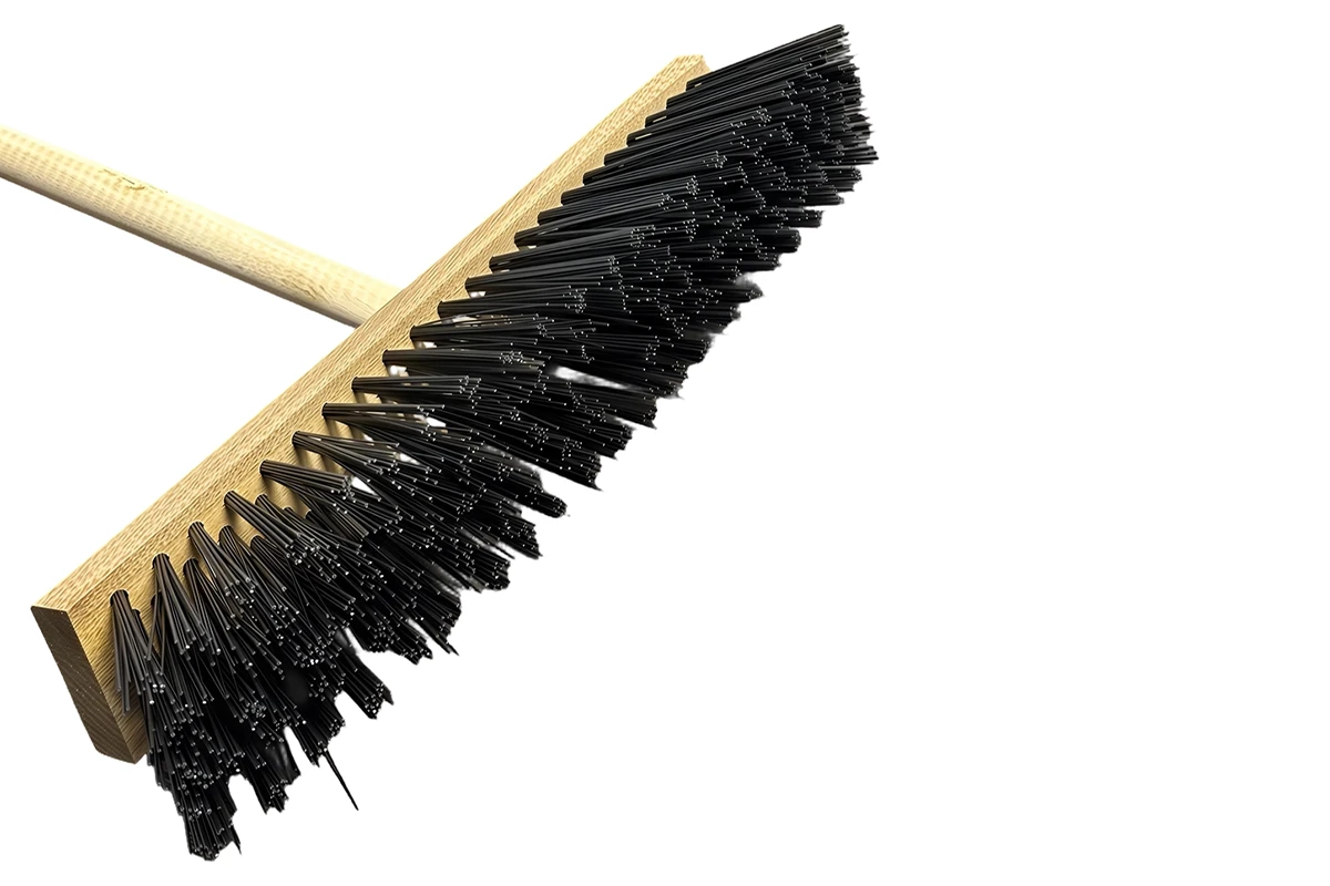 Жесткая щетина из полипропилена: Легко справляется с прилипшей грязью, листьями, песком, мелким строительным мусором и снегом. Устойчива к влаге и истиранию.