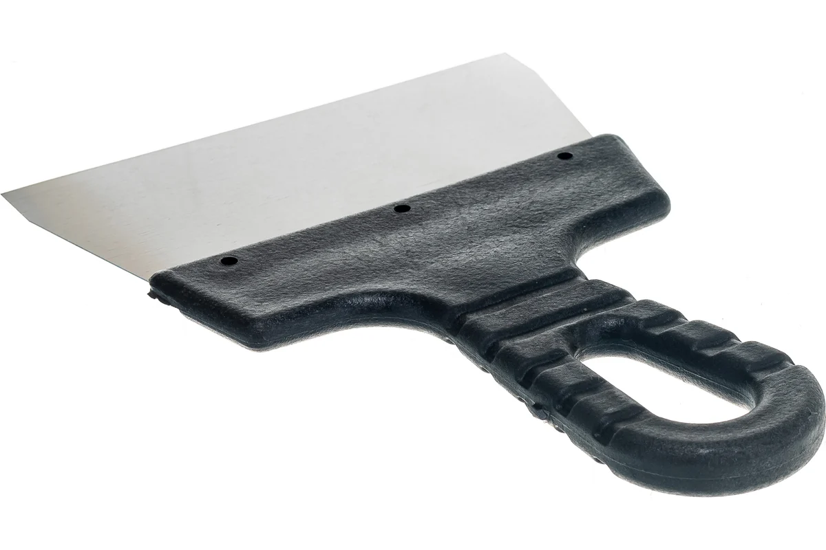 Пластиковая рукоятка имеет эргономичную форму, удобно лежит в руке и снижает утомляемость при продолжительной работе. Фасадный шпатель 150 мм подходит как для профессиональных отделочников, так и для частного применения, являясь практичным инструментом для качественного выполнения штукатурных и шпаклёвочных работ.