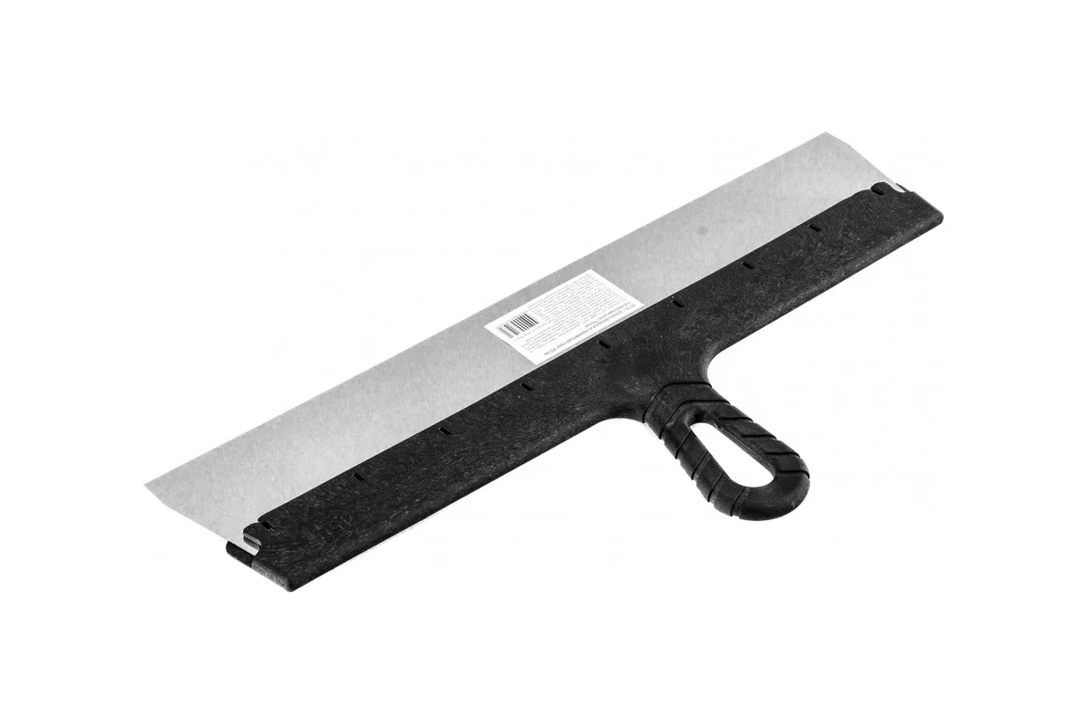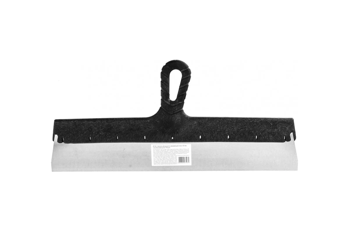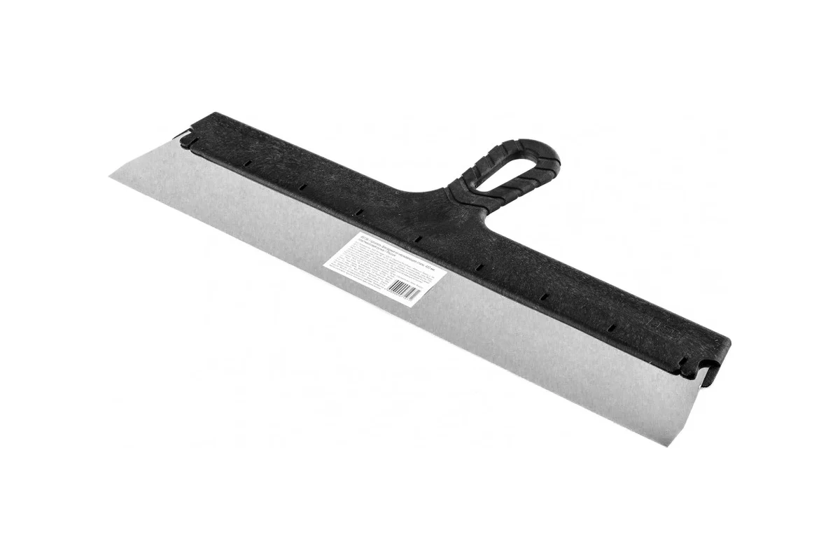 Рабочее полотно выполнено из нержавеющей стали, устойчивой к коррозии, влаге и агрессивным строительным составам. Жёсткая и ровная кромка позволяет формировать гладкий слой раствора без перепадов и следов, что особенно важно при обработке больших площадей. Ширина 450 мм обеспечивает высокую производительность и сокращает количество проходов, ускоряя процесс отделки.