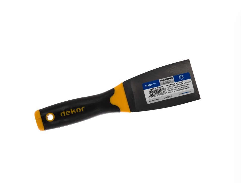 Этот малярный шпатель от бренда DEKOR - надежный инструмент, предназначенный для отделочных работ и нанесения шпатлевки. Благодаря высококачественному лезвию из нержавеющей стали, шпатель обладает отличной гибкостью и устойчив к коррозии, что обеспечивает долгий срок службы и ровный результат нанесения.