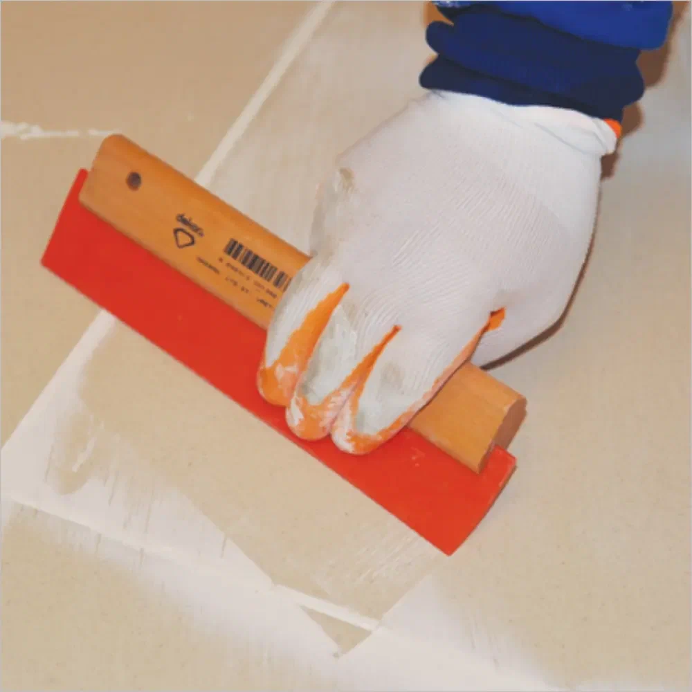 Резиновый шпатель Dekor 134 также идеально подходит для очистки поверхности от излишков затирочной массы после заполнения швов.