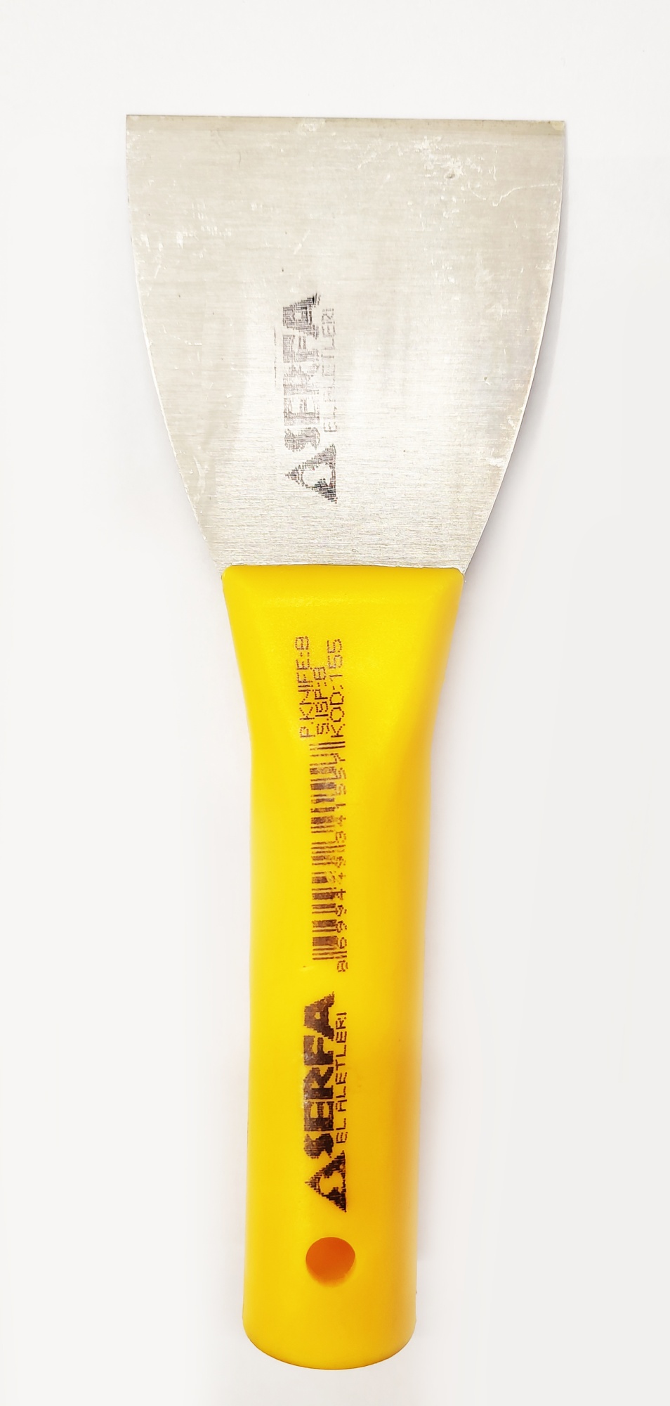 Этот шпатель-скребок отличается увеличенной шириной лезвия в 80 мм, что делает его идеальным для более широких поверхностей и обеспечивает более высокую производительность при удалении старых покрытий. Прочное соединение с черенком гарантирует надежность в работе и позволяет передавать большее усилие, необходимое для снятия застарелых материалов. Лезвие изготовлено из высококачественной стали, что обеспечивает его долговечность и сохранение остроты на протяжении длительного времени.