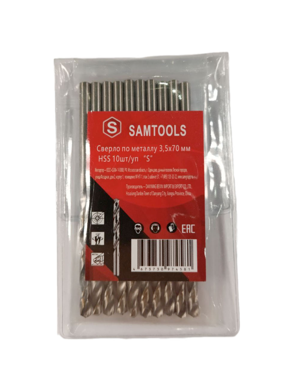 Спиральное (винтовое) сверло по металлу HSS 3.5х70 мм (10 штук в упаковке) Samtools от Samgrupp - расходное комплектующее для электроинструмента, применяемое при высверливании отверстий в металлах и стали. Выполнено из полированной HSS стали.В каталоге нашей компании представлены сверла разных размеров.