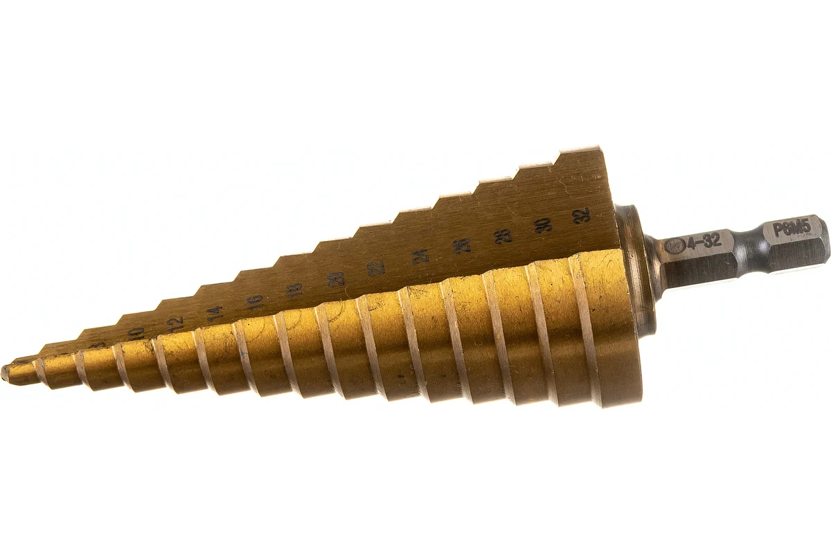 Ступенчатая форма рабочей части позволяет получать отверстия различных диаметров с высокой точностью и ровными краями. Каждый шаг соответствует определённому размеру, что обеспечивает контроль процесса сверления и снижает риск повреждения материала. Такой тип сверла особенно удобен при работе с листовым металлом, где важно избежать заусенцев и деформаций. Диапазон от 4 до 32 мм охватывает большинство стандартных монтажных задач.