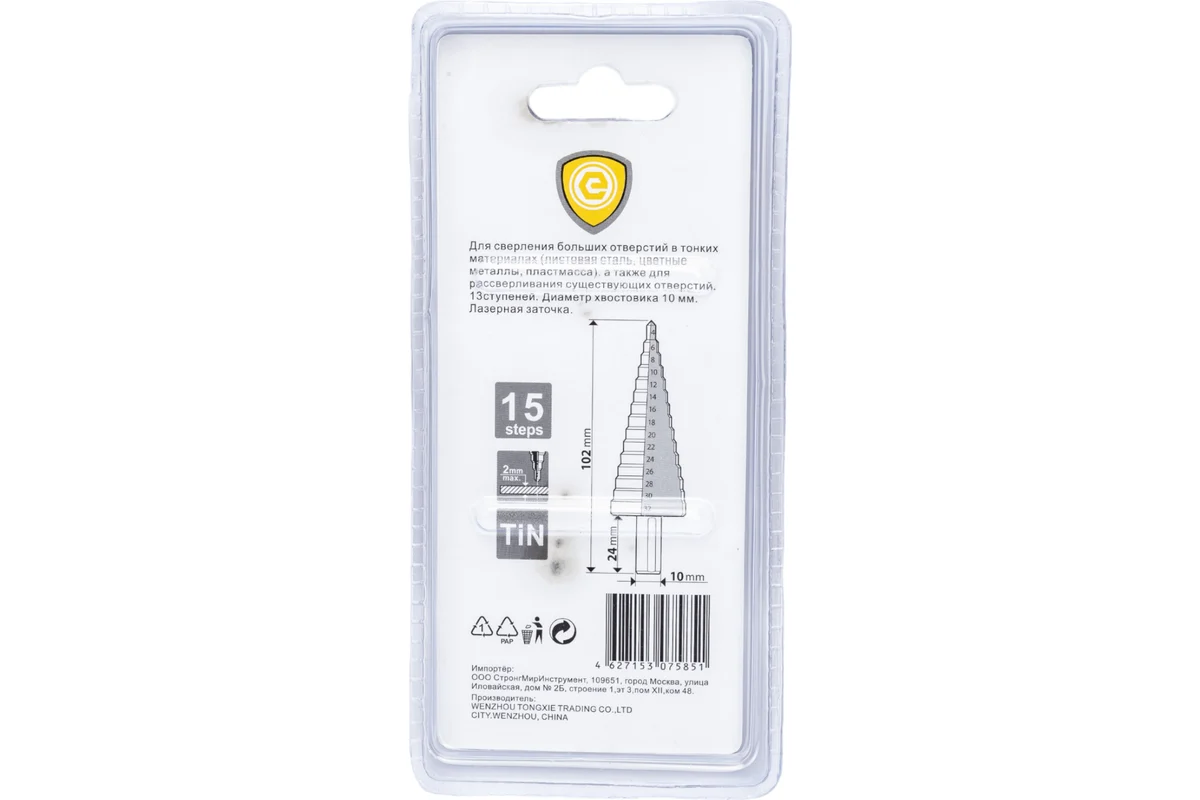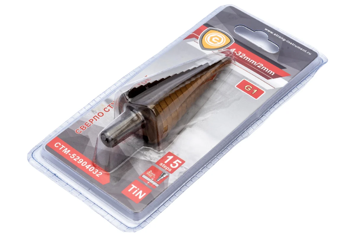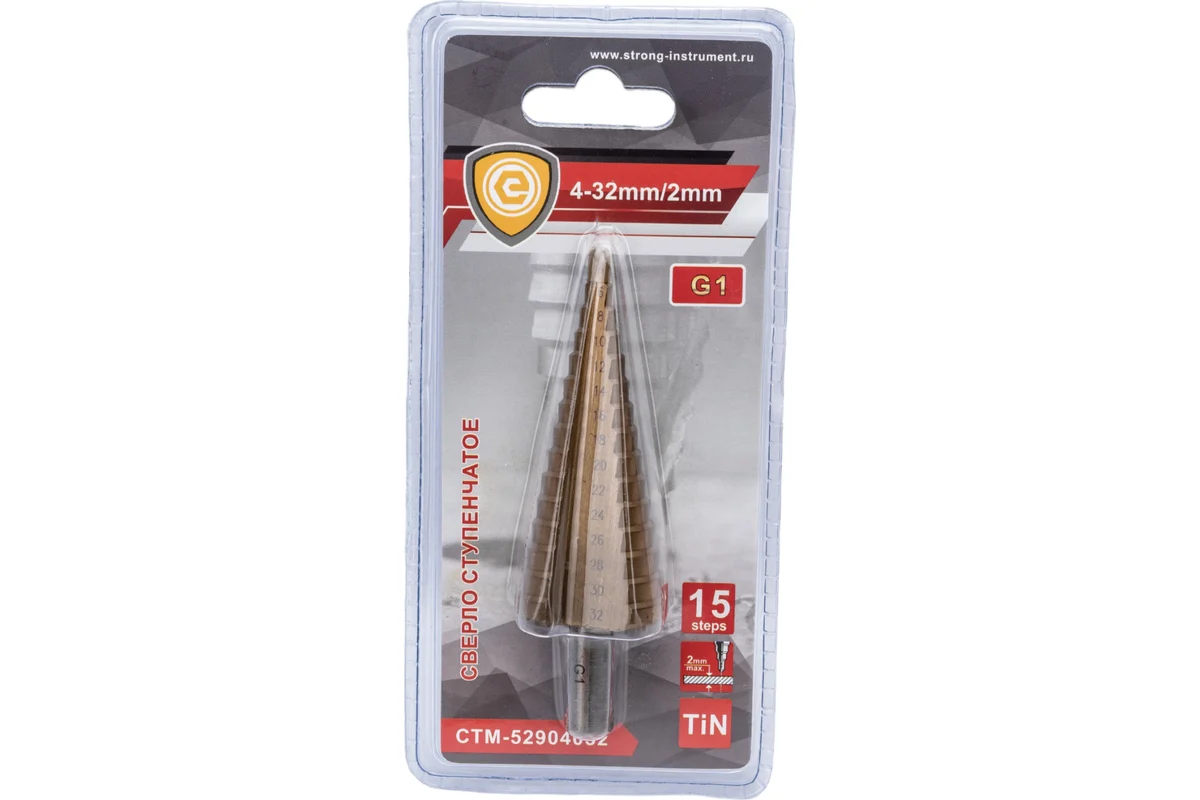 Сверло ступенчатое по металлу 4-32 мм (цилиндрический хвостовик) Strong G1 СТМ-529