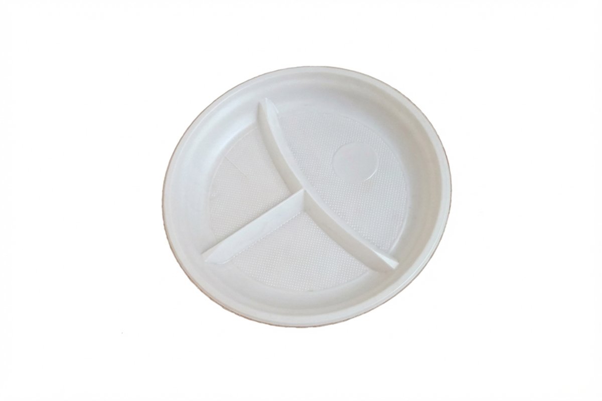 Тарелка 3-х секционная — практичный элемент кухонного инвентаря, предназначенный для раздельной подачи нескольких блюд в рамках одной сервировки. Конструкция с тремя секциями позволяет одновременно размещать основное блюдо, гарнир и соус, сохраняя вкусы раздельными и обеспечивая аккуратный внешний вид подачи.Одноразовая трёхсекционная тарелка широко используется в столовых, кафе, на линиях раздачи, в кейтеринге, при выездных мероприятиях и в учреждениях с организованным питанием. Она удобна для комплексных обедов, диетического и порционного меню, а также для обслуживания большого потока гостей. Формат одноразовой посуды исключает необходимость мытья и упрощает логистику.
