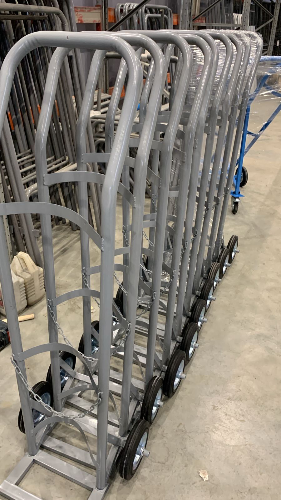 Серия ГБ-1 предназначена для перевозки одного баллона (кислород, ацетилен, углекислота и т.д.) Баллон укладывается в специальное ложе, крепление осуществляется оцинкованной цепью с простой и надежной фиксацией. Серия комплектуется литыми колесами диаметром 200 мм. Покраска изделия – порошковая, высокотемпературная.Характеристики: