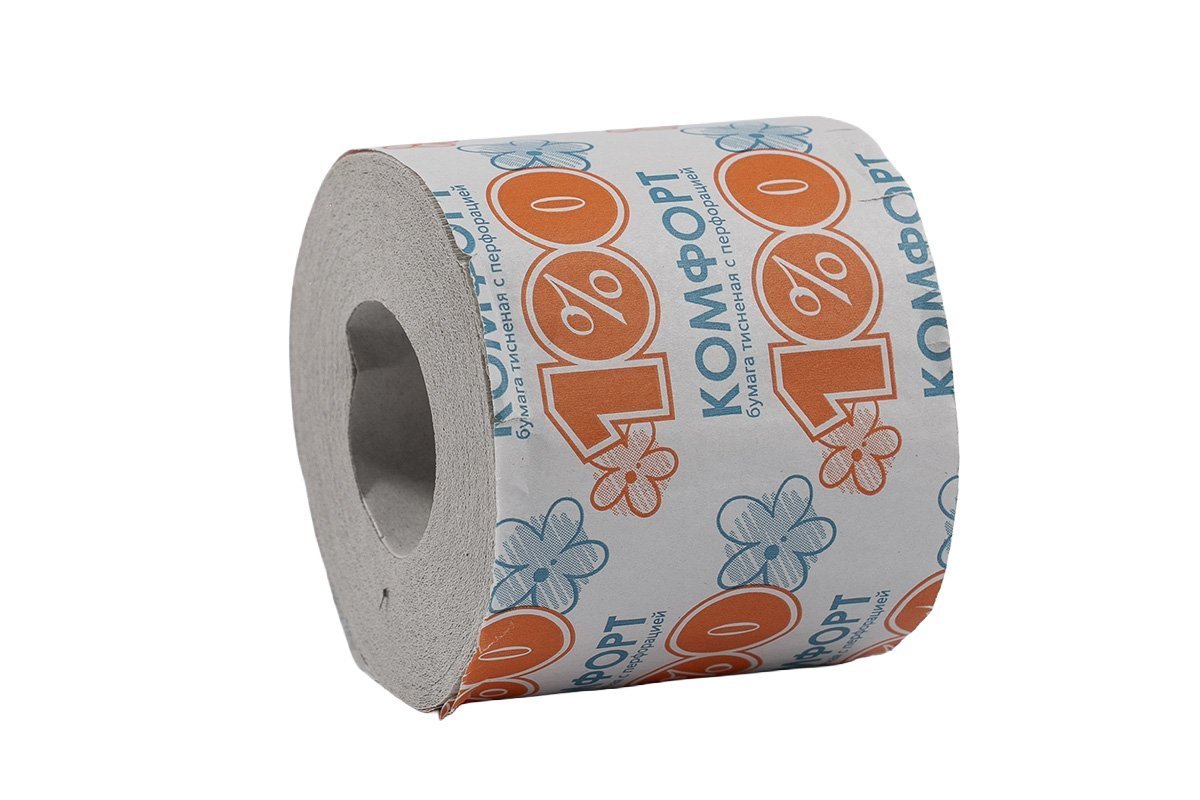 Туалетная бумага 1-слойная "Комфорт" серая 56 шт/уп