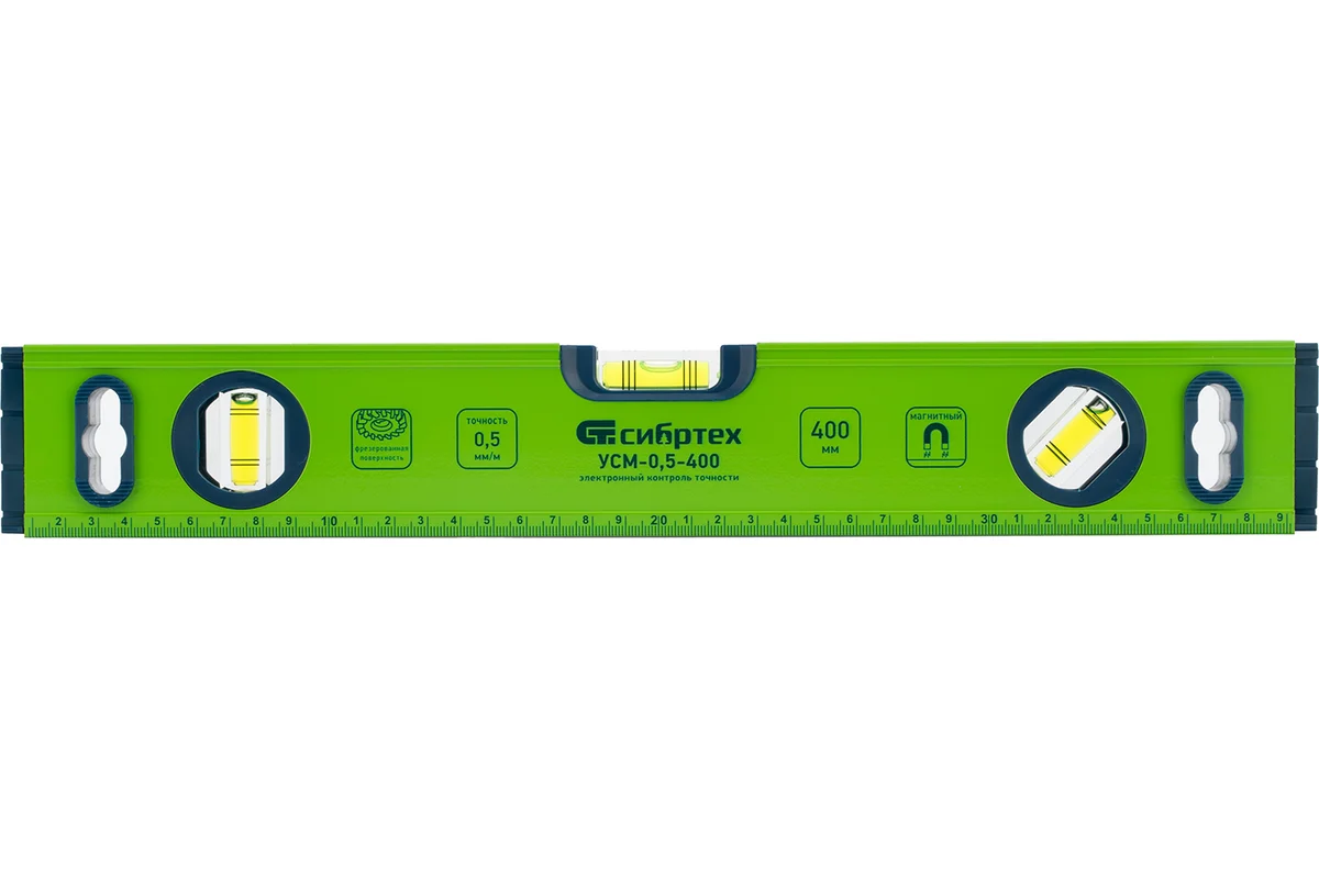 Длина 400 мм обеспечивает оптимальный баланс между манёвренностью и стабильностью показаний. Уровень прост в использовании, не требует обслуживания и подходит как для профессиональных мастеров, так и для бытового применения. Магнитный уровень Сибртех УСМ-0,5-400 — практичное решение для задач, где важны точность, удобство и надёжность измерительного инструмента.