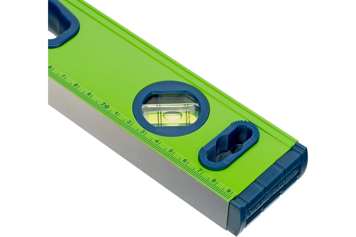 Корпус уровня выполнен из прочного алюминиевого профиля и оснащён фрезерованной рабочей поверхностью, обеспечивающей плотное прилегание к основанию и высокую точность показаний. Встроенные магниты позволяют надёжно фиксировать инструмент на металлических элементах, что упрощает монтаж и освобождает руки мастера. Три измерительных глазка дают возможность контролировать горизонталь, вертикаль и дополнительное угловое положение.