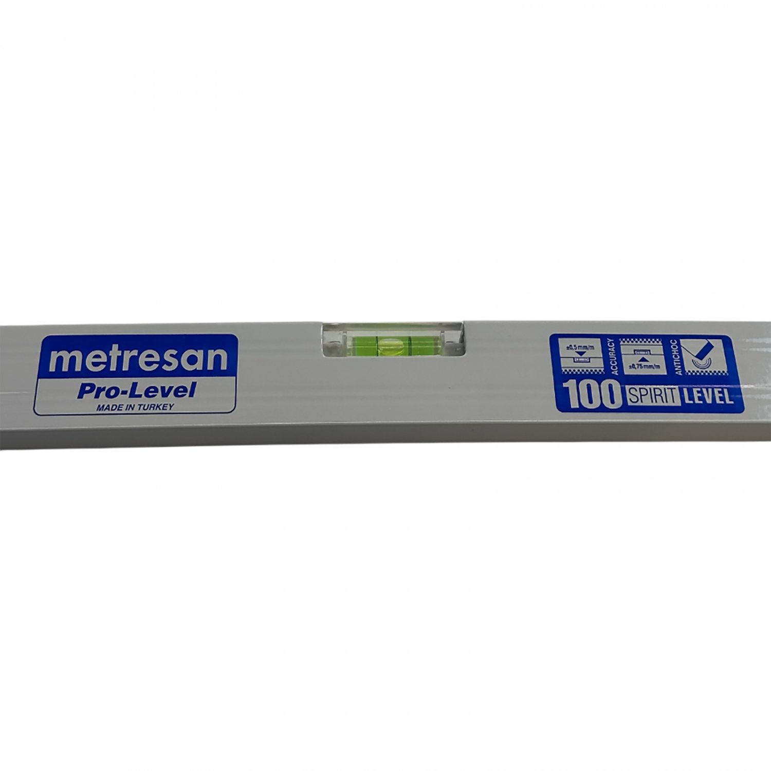 Алюминиевый строительный уровень 100 см пузырькового типа серии Pro-Level турецкой компании Metresan предназначен для профессионального использования.Модели уровней сделаны из экструдированного алюминия. Рельефный корпус инструмента дает дополнительное удобство при захвате, а прорезиненные вставки в торцевых частях корпуса делает строительные уровни Metresan устойчивыми к дарам. Горизонтальное (180°) крепление регулируется винтами по бокам. Погрешность 0,5мм/м.