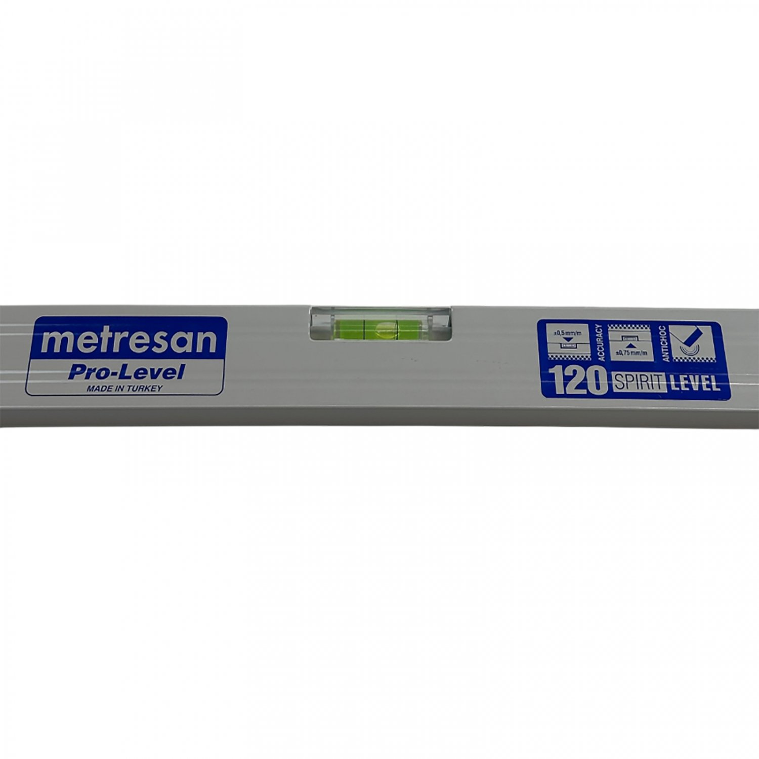 Алюминиевый строительный уровень пузырькового типа 1200 мм серии Pro-Level турецкой компании Metresan предназначен для профессионального использования.Модели уровней сделаны из экструдированного алюминия. Рельефный корпус инструмента дает дополнительное удобство при захвате, а прорезиненные вставки в торцевых частях корпуса делает строительные уровни Metresan устойчивыми к дарам. Горизонтальное (180°) крепление регулируется винтами по бокам. Погрешность 0,5мм/м