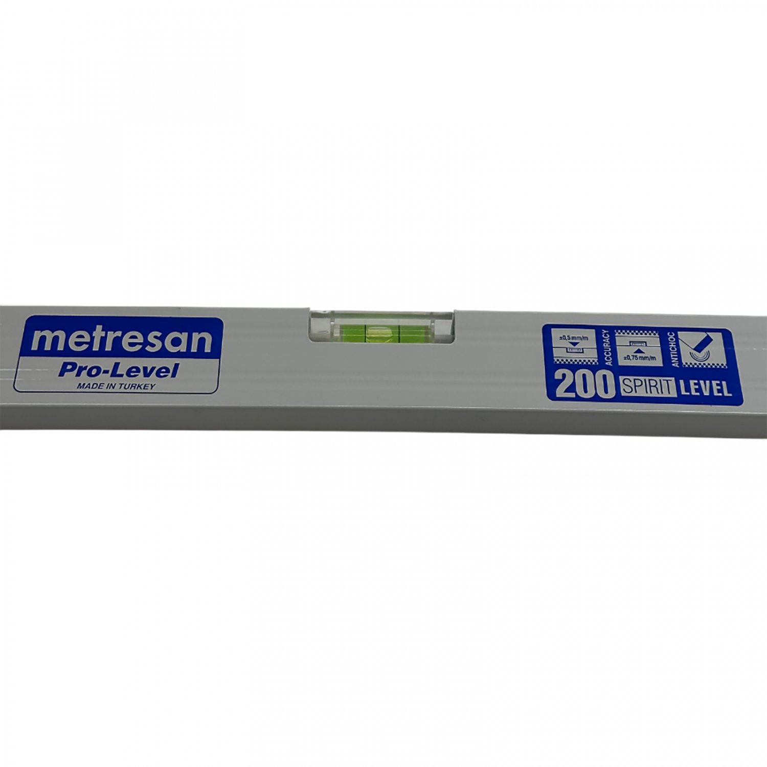 Алюминиевый строительный уровень пузырькового типа (2 метра) серии Pro-Level турецкой компании Metresan предназначен для профессионального использования.Модели уровней сделаны из экструдированного алюминия. Рельефный корпус инструмента дает дополнительное удобство при захвате, а прорезиненные вставки в торцевых частях корпуса делает строительные уровни Metresan устойчивыми к дарам. Горизонтальное (180°) крепление регулируется винтами по бокам. Погрешность 0,5мм/м.