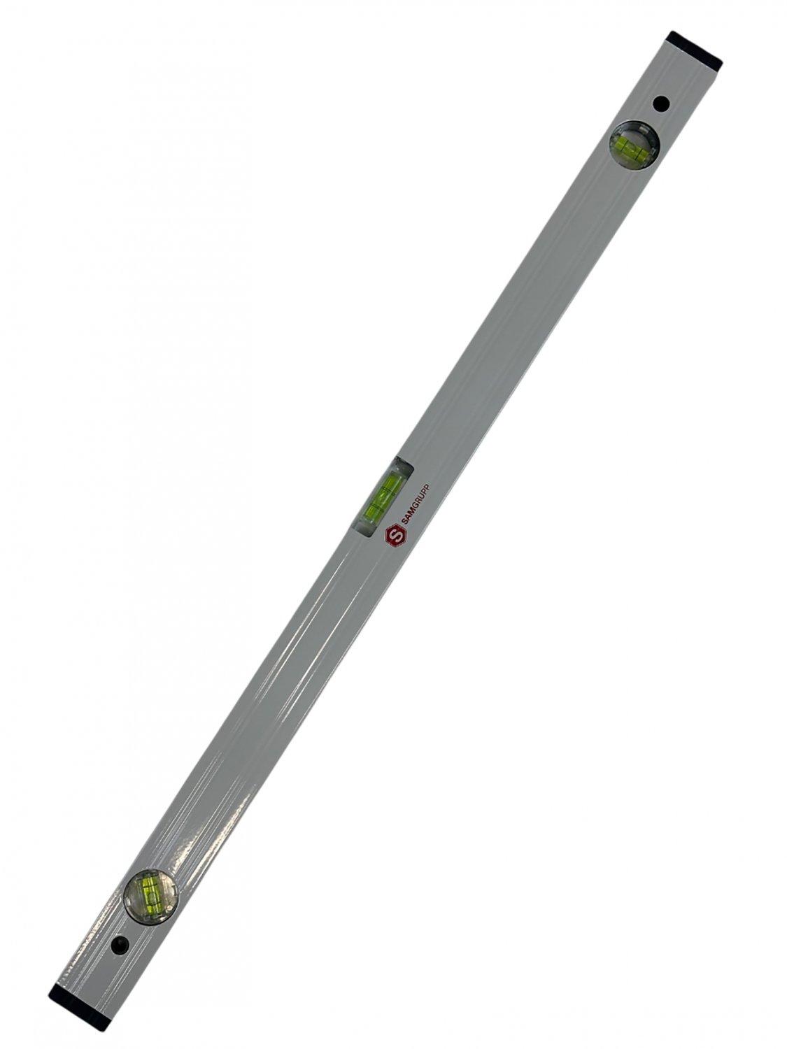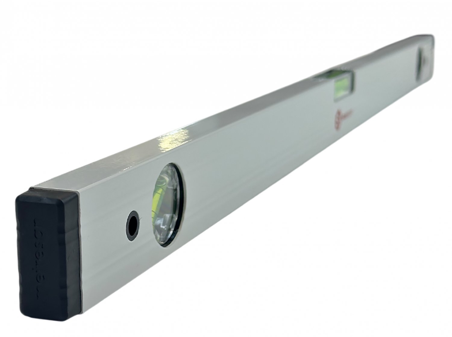 Модели уровней сделаны из экструдированного алюминия. Рельефный корпус инструмента дает дополнительное удобство при захвате, а прорезиненные вставки в торцевых частях корпуса делает строительные уровни Metresan устойчивыми к дарам. Горизонтальное (180°) крепление регулируется винтами по бокам. Погрешность 0,5мм/м.