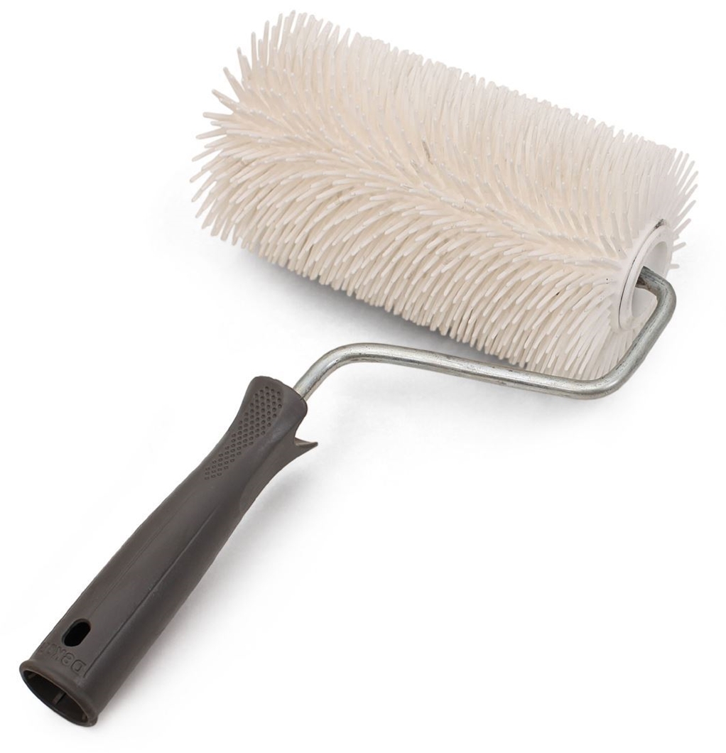 Этот валик прекрасно подходит для работы с наливными полами. Он эффективно удаляет воздушные пузырьки из стяжки при прокатывании, обеспечивая гладкое и ровное покрытие. Инструмент оснащён удобной ручкой, что значительно упрощает процесс. Крепление осуществляется на удлинитель (черенки с фиксированием под гвоздь или саморез). Длина игл – 30 мм, ширина ролика – 110 мм.