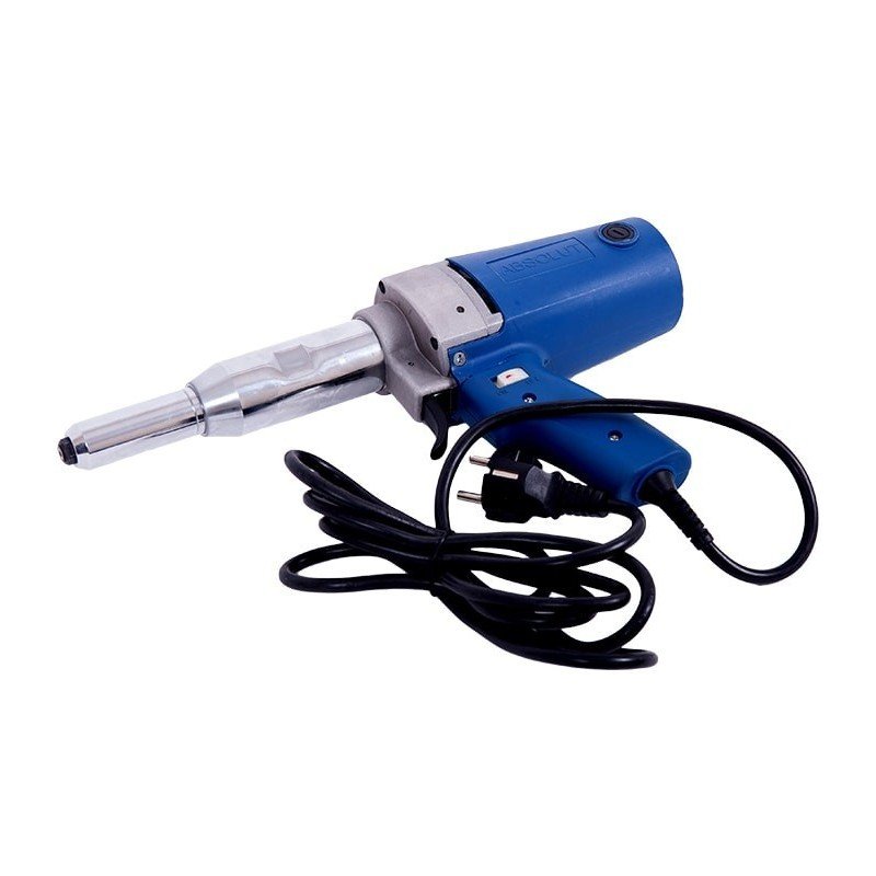 Предназначен для работы с вытяжными заклепками диаметром от 3.2 до 5.0( до 4.0 с нержавейкой). Работает от сети 220 В. Мощность 400 Вт. Вес 2.4 кг. Сила вытягивания 7000 Н. Рабочий шаг 23 мм. Гарантия 12 мес.