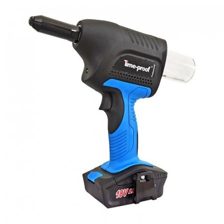 Time-proof TDC7000 - это профессиональный инструмент для монтажа вытяжных заклепок диаметром от 4,0 мм до 6,4 мм. Оснащен бесщеточным двигателем с силой вытягивания в 15 000 N, что позволяет с легкостью устанавливать заклепки даже 6,4 мм из нержавеющей стали. Комплектуется 2-мя батареями 18 В Li-Ion 2.0 Ач и зарядным устройством. Аккумуляторы оснащены индикатором заряда батареи.